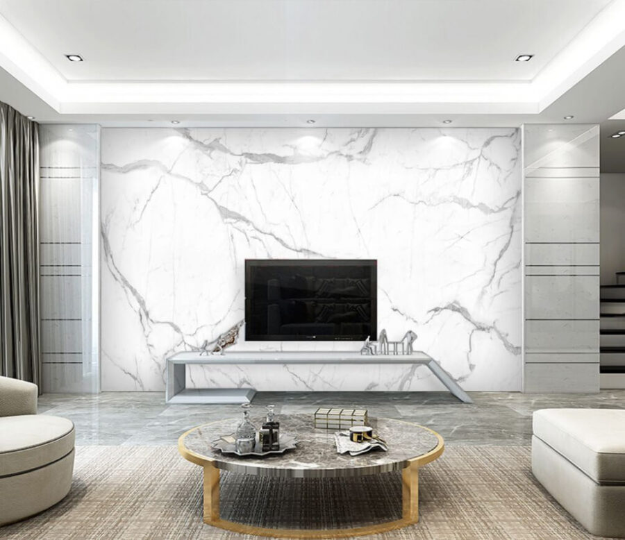 Wall murals White marble with gray veining Wall murals White marble with gray veining