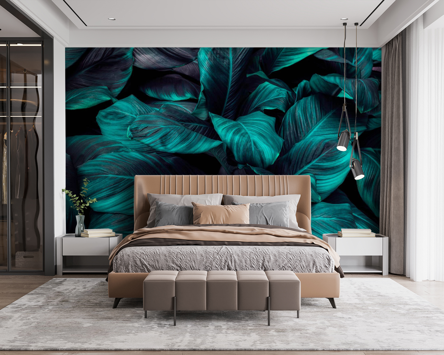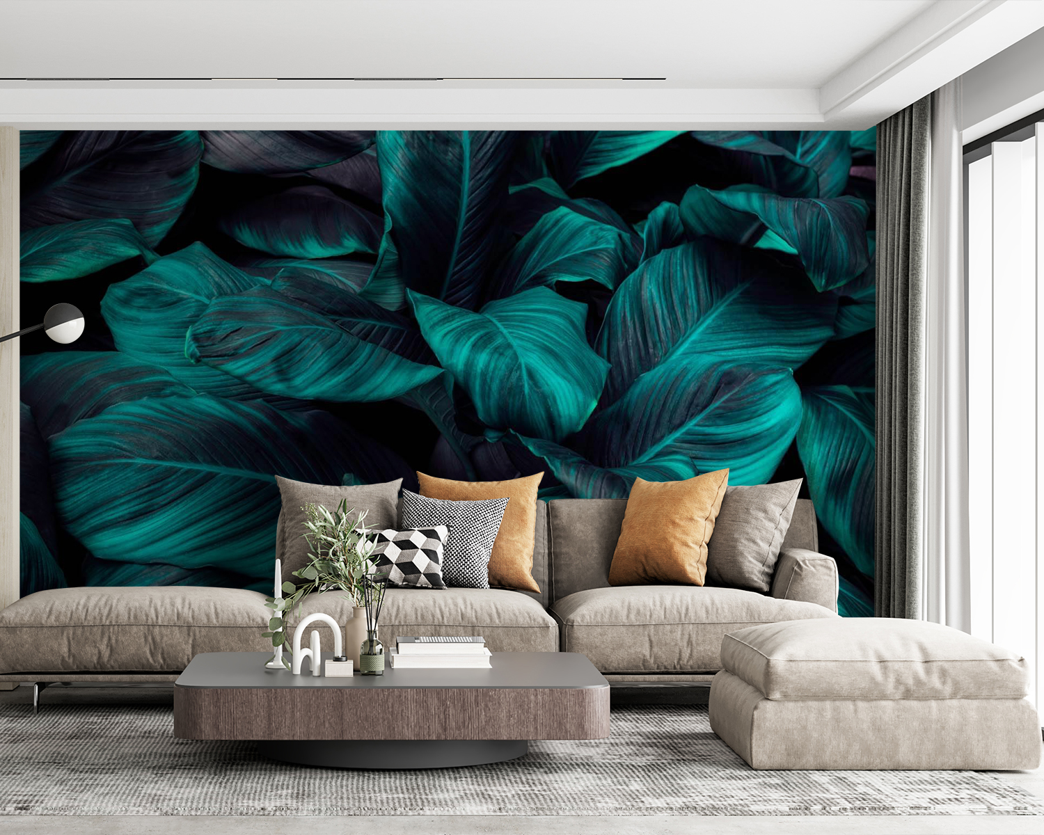 Dive into a calming oasis with the “Lush Leaves in Deep Turquoise Tones” mural. Imagine stepping into your own jungle retreat every time you walk into the room. Those vibrant leaves pop against any wall, creating an instant mood-lifter. It’s like a secret garden but easier to maintain—no watering needed! Just picture sipping your morning coffee, feeling surrounded by nature, while wondering if a parrot might suddenly drop by for a chat. It’s bold, a bit cheeky, and guarantees to spark a conversation or two. Bring that lush vibe home and let your walls do the talking!