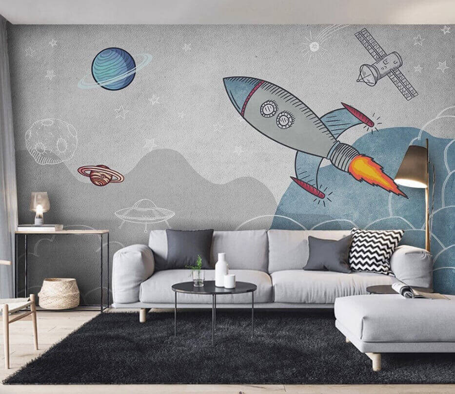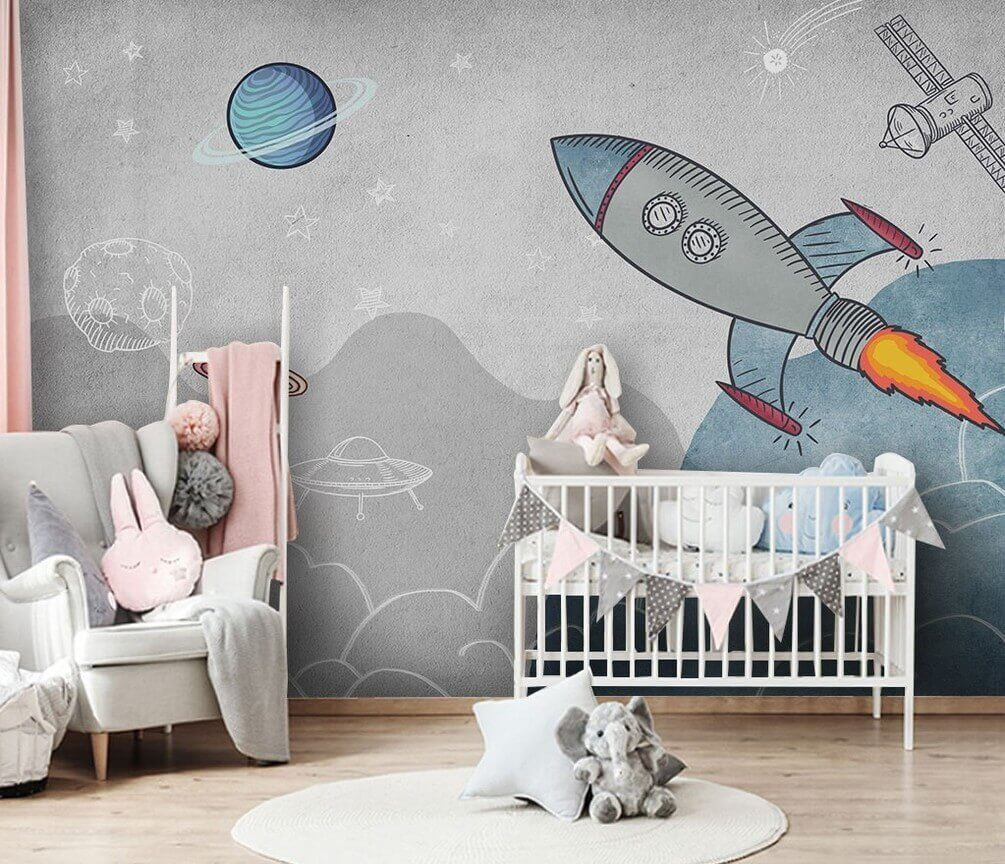 Transform any child’s room into a mini universe with this vibrant wall mural featuring a rocket ship zooming into space! Picture this: little ones gazing at the bold colors and playful designs, igniting their imaginations while they drift off to sleep. The mural isn’t just a decoration; it’s an adventure waiting to unfold, inviting dreams of distant planets and friendly aliens.