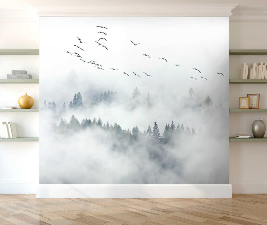Transform any room into a serene escape with this stunning wall mural featuring birds soaring gracefully across the sky. It’s like bringing a slice of nature indoors, inviting a fresh breeze and a feeling of freedom right into your space. Imagine sipping your morning coffee while gazing at these majestic creatures flying through layers of soft mist and towering trees. It’s as if they’re sharing stories of adventure and peace. Perfect for creating that tranquil atmosphere—guests will think you’ve turned your home into a cozy retreat. Who wouldn’t want that?