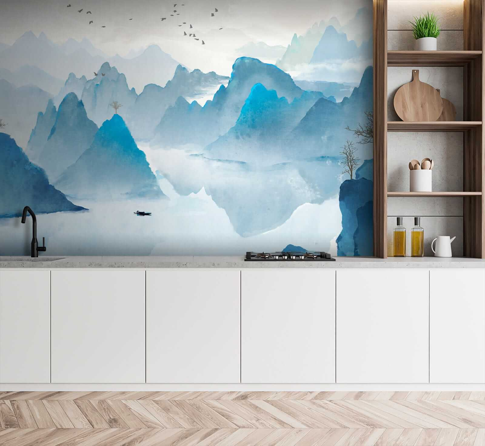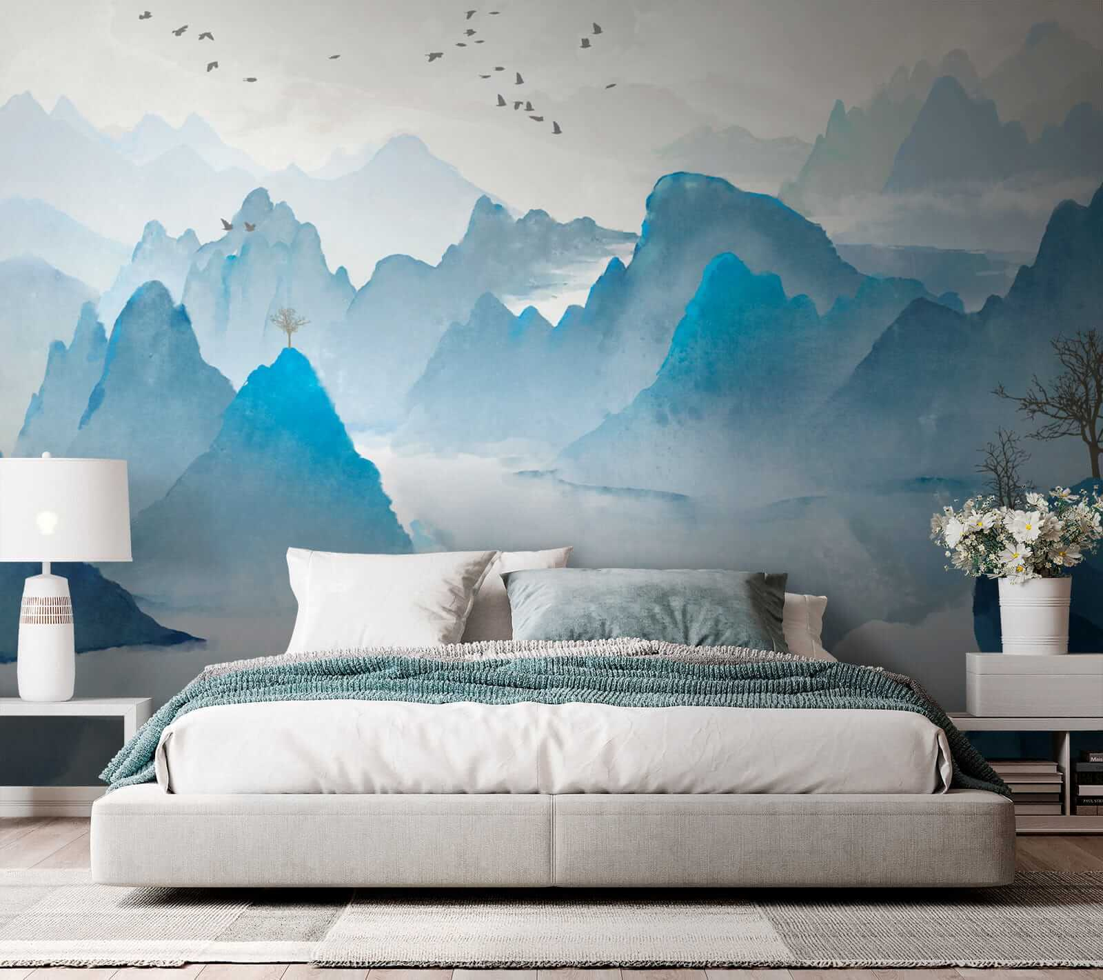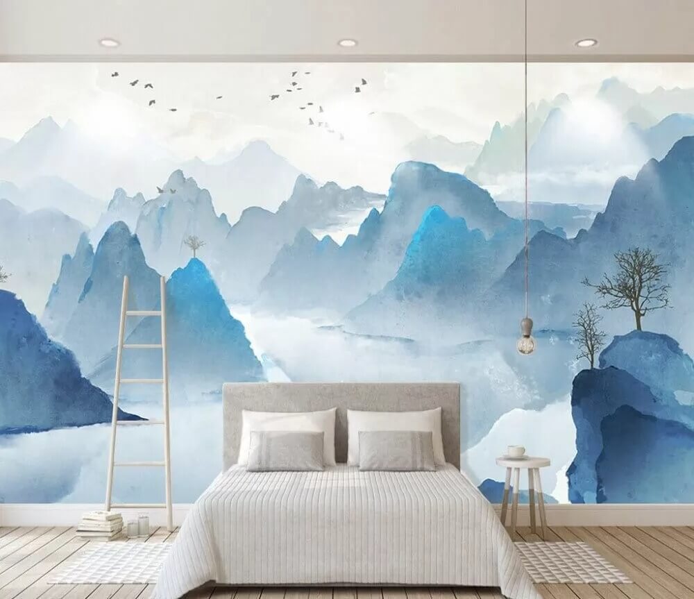 Transform your space with this stunning mural, where a flock of birds takes flight against a dreamy backdrop of serene mountains. Imagine standing in a room where the hustle and bustle of the world just melts away. The soft hues of blue ripple like a gentle breeze, playing tricks on the mind, almost inviting a peaceful daydream. Perfect for moments of escape—whether sipping morning coffee or unwinding after a long day. It’s like having a slice of nature right at home, ready to spark inspiration or a simple smile. Plus, it’s an instant conversation starter. Who wouldn’t love discussing the beauty of nature over a cozy cup?