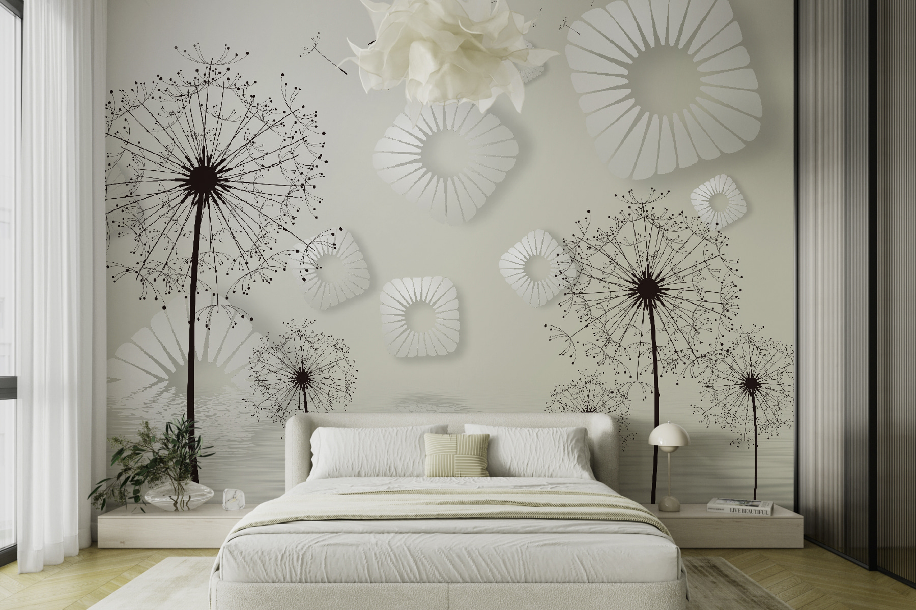 Transform your space with this enchanting wall mural featuring a dreamy white circular design against a soft surface. It’s like a breath of fresh air—light, airy, and just the right touch of whimsy. Imagine stepping into a room where dandelions dance gently in the breeze, soft shadows playing on the walls. It instantly uplifts the mood, sparking joy and creativity. Perfect for a cozy nook or a lively living room, this mural feels both modern and timeless. It’s all about creating a serene escape, making every glance a moment of calm—like a little piece of nature right at home. Perfect for those who appreciate simplicity with a twist!