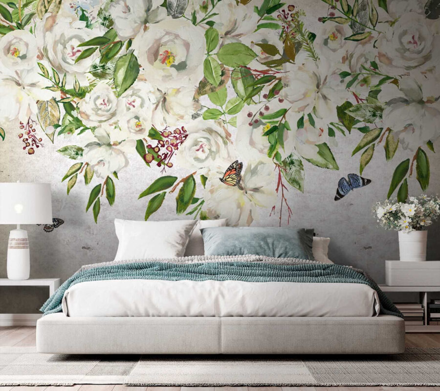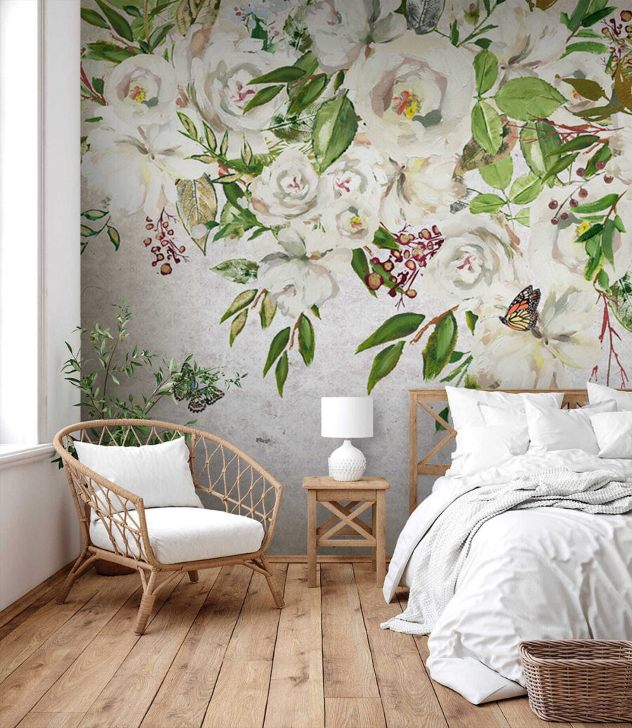 Transform your space with this delightful wall mural of white flowers and fluttering butterflies. It’s like stepping into a secret garden without the pesky insects—unless you count these charming butterflies! Picture this: soft petals and vibrant greens washing over your walls, bringing a gentle breeze of nature into your home. This mural whispers tranquility, perfect for a cozy reading nook or a serene bedroom. Imagine curling up with a good book, surrounded by the calming vibes of this artwork. It’s not just decor; it’s an experience waiting to bloom! Let your walls tell a story.
