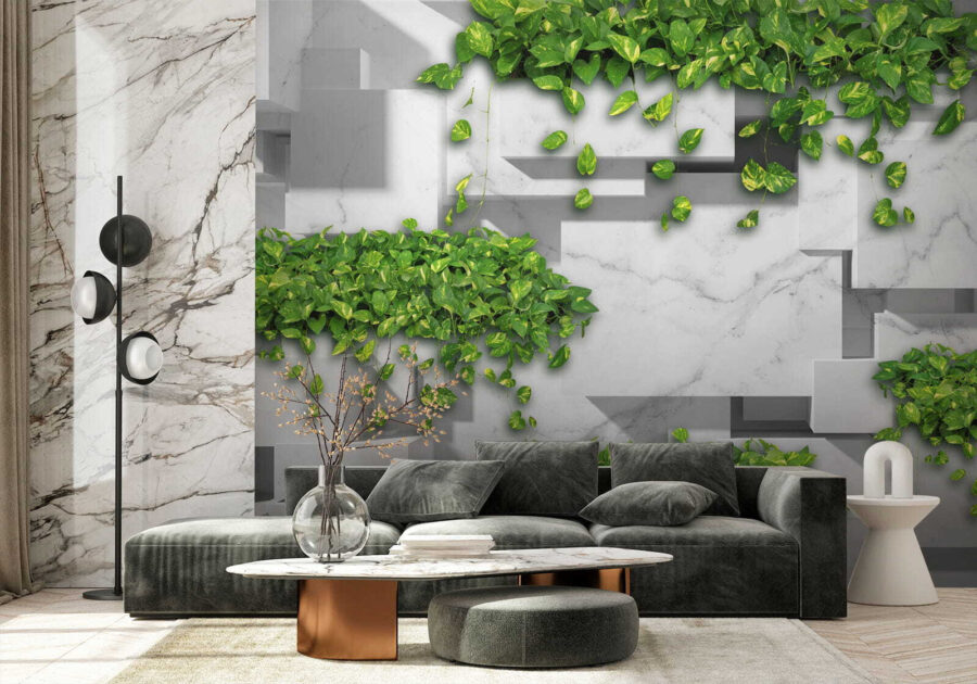 Transform any room into a serene retreat with this stunning mural, “Green Leaves on Geometric Marble Design.” Imagine stepping into a space that feels both fresh and modern, like a cool garden party that spills indoors. The bold greens pop beautifully against soft marble tones—it’s like nature and architecture decided to be best friends. Whether it’s your living room, office, or that cozy reading nook, this mural brings a burst of life that can lift spirits. Plus, who knew greenery could be so chic? It’s almost like having a garden without the pesky watering! Perfect for those who love a touch of nature but don’t have a green thumb. You’ll be stealing glances at the wall all day.