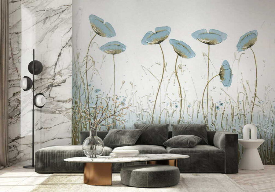 4 reviews for Wall murals Blue flowers dance in gentle breeze