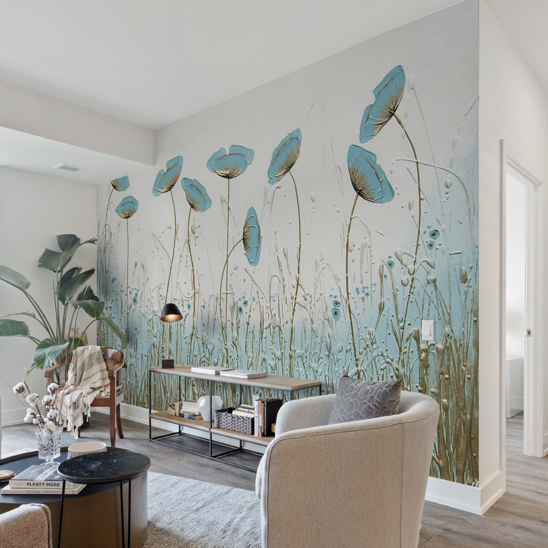 Transform your space into a serene garden with the “Blue Flowers Dance in Gentle Breeze” mural. Just imagine walking into a room that feels like a sunny meadow, where vibrant blue flowers sway ever so slightly in an imaginary breeze. These watercolor blooms add a splash of joy and calm, perfect for any wall that needs a pop of personality. Whether it’s a cozy reading nook or a lively dining area, this mural whispers a sweet story of nature and tranquility. And hey, who wouldn’t want their walls to feel like a gentle hug? Perfect for those days when you just need a little escape—no travel required!