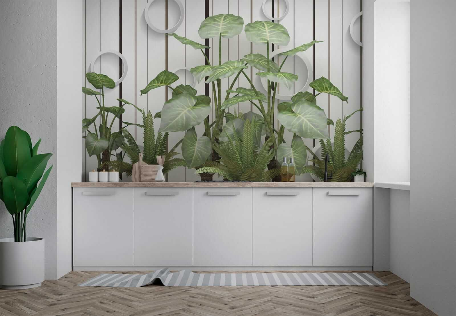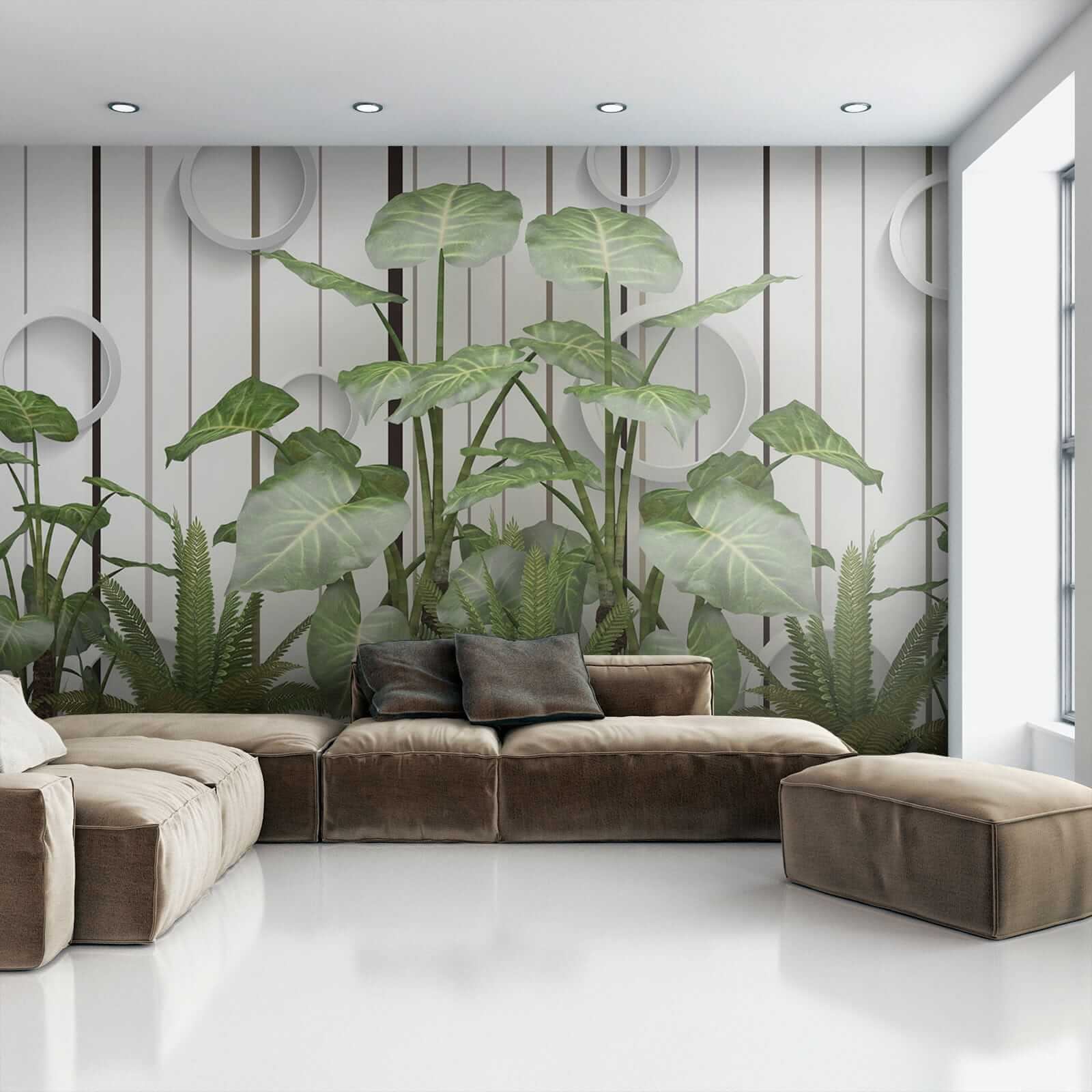 Transform any room into a tropical escape with this stunning mural, “Lush Leaves against a Striped Wall.” Imagine stepping into a breath of fresh air every time you enter the space—those vibrant greens just pop, and they’re set against sleek stripes that bring a modern twist. It’s like having a mini rainforest at home, but without the humidity. Perfect for a living room or even a cozy reading nook, this mural invites nature indoors while still feeling polished. Friends might just think you have a secret botanical garden. Who doesn’t love a conversation starter? Feel the room come alive, sparking smiles and a few “where’d you get that?” questions as everyone enjoys the refreshing vibe!