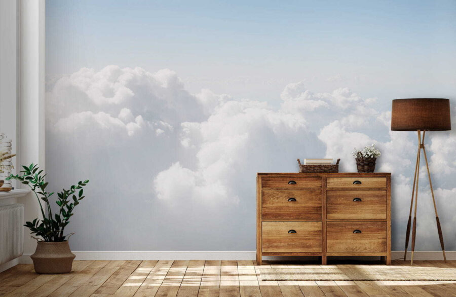 Transform a dull wall into a dreamy escape with this “Blue Sky with Clouds” mural. Imagine walking into a room that feels brighter and airier, like stepping outside on a stunning summer day. The fluffy white clouds drifting against a soft blue sky can whisk you away—perfect for those moments when you just need a little daydreaming. It’s like having a window to the outdoors, minus the allergies! This mural pairs beautifully with cozy furniture or vibrant decor, giving your space that refreshing vibe. Get ready to bask in the beauty of your own indoor sky!