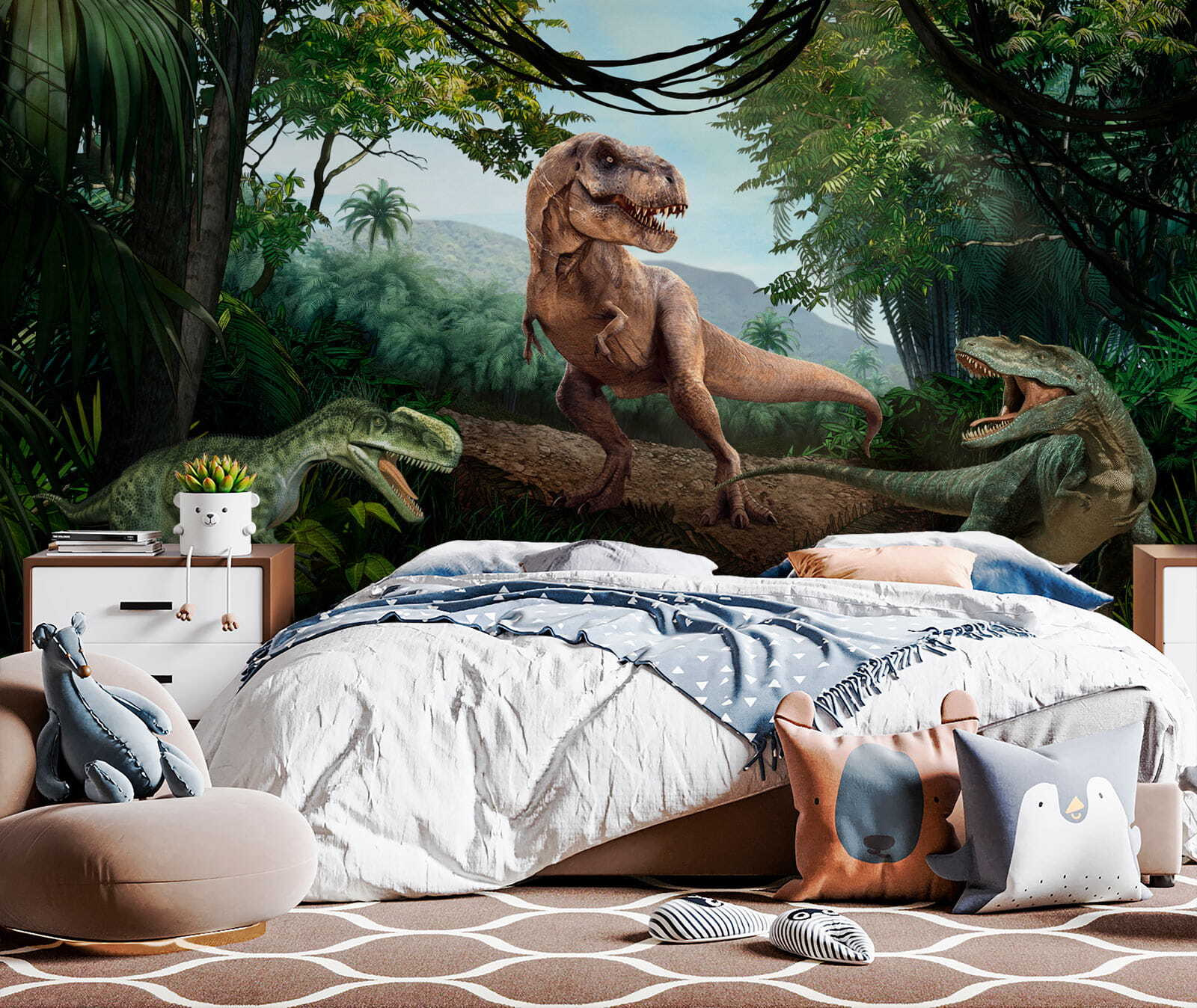 Transform a room with the “Dinosaur in the Jungle” wall mural, where adventure meets imagination! Picture a vibrant jungle alive with dinosaurs, just waiting to spark joy in kids and nostalgia in grown-ups. Every glance offers a burst of color and friendliness—perfect for playrooms or bedrooms. It’s like stepping into Jurassic Park without the raptors chasing you! Kids can spin tales of epic dino adventures while dreaming big. Plus, who wouldn’t want to wake up to a T-Rex smiling back? This mural pulls the heartstrings and tickles the imagination—what a perfect blend!