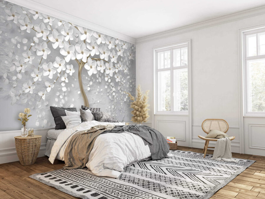 Transform your space into a serene oasis with the “Elegant Tree with White Blossoms” mural. Imagine a gentle breeze rustling through delicate white flowers, inviting calm into any room. The stunning design, with its graceful tree and soft hues, can make your walls feel like a soothing garden escape. Whether it’s for a cozy reading nook or a lively living area, this mural adds a touch of sophistication—perfect for those who love nature’s beauty without the pollen! Just picture friends admiring it, thinking you have the best taste in decorations. It’s just the right kind of artistic flair to spark joy and conversation.