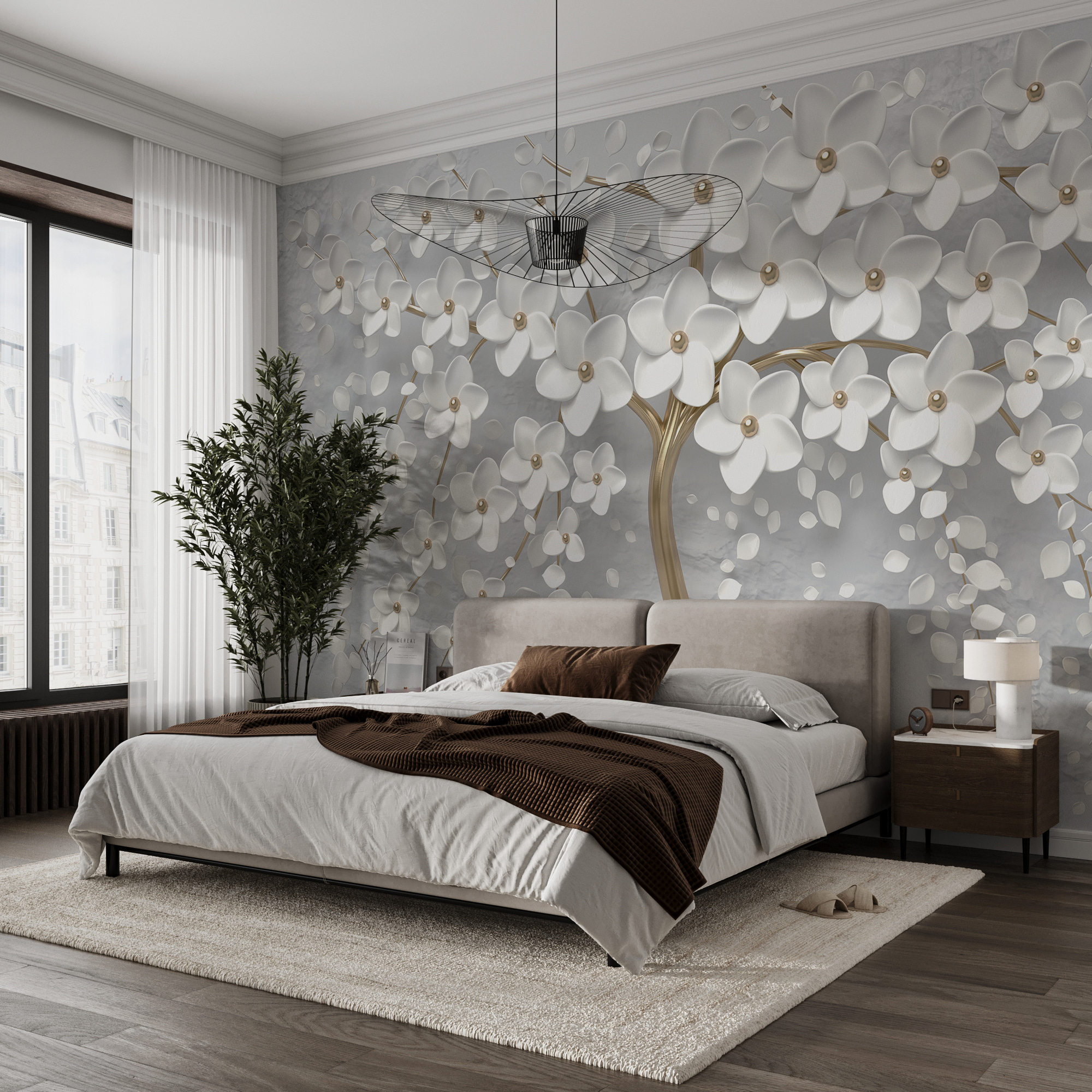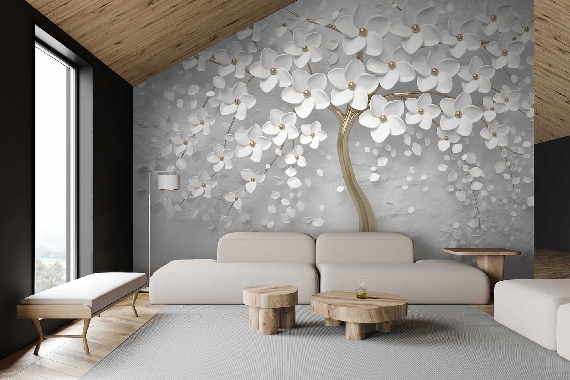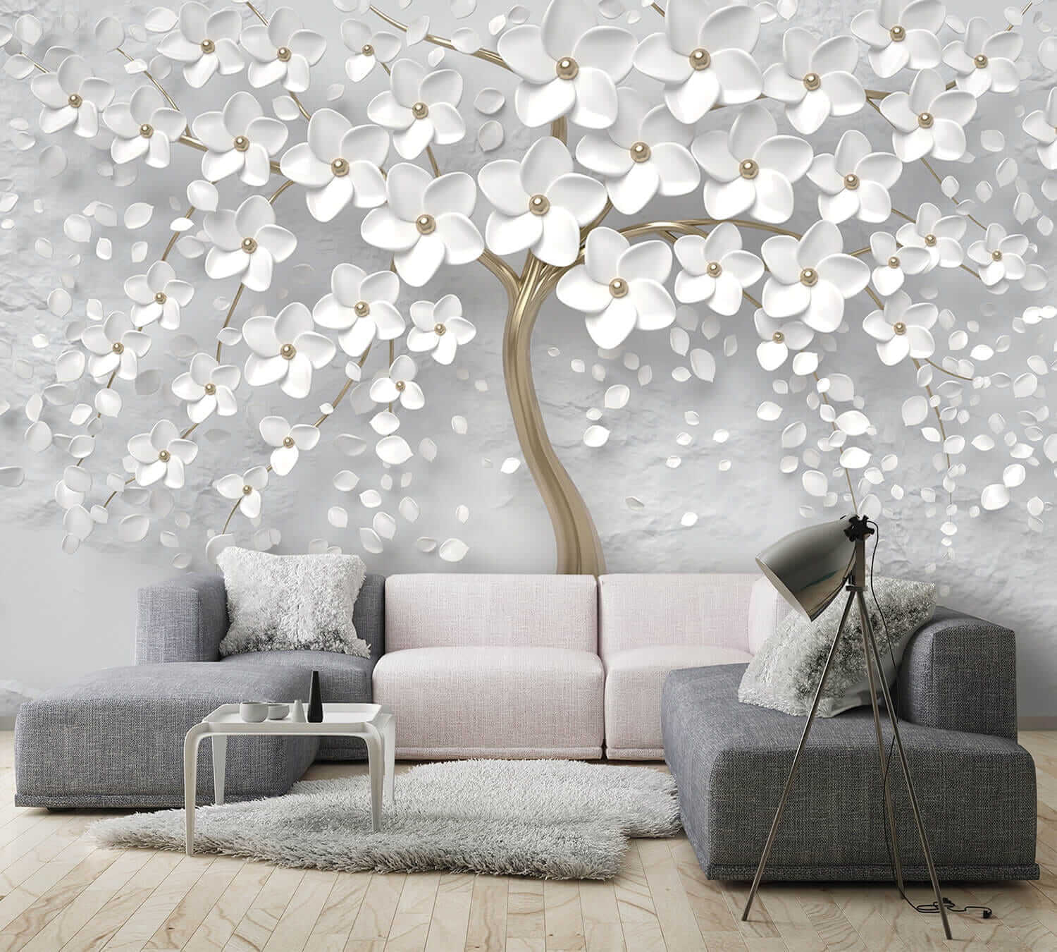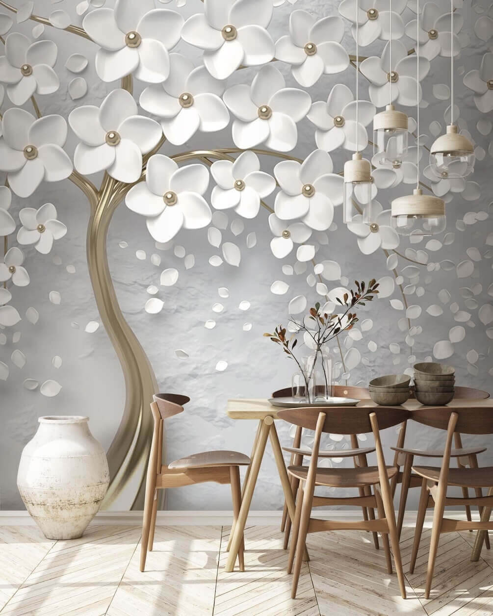 Transform your space into a serene oasis with the “Elegant Tree with White Blossoms” mural. Imagine a gentle breeze rustling through delicate white flowers, inviting calm into any room. The stunning design, with its graceful tree and soft hues, can make your walls feel like a soothing garden escape. Whether it’s for a cozy reading nook or a lively living area, this mural adds a touch of sophistication—perfect for those who love nature’s beauty without the pollen! Just picture friends admiring it, thinking you have the best taste in decorations. It’s just the right kind of artistic flair to spark joy and conversation.