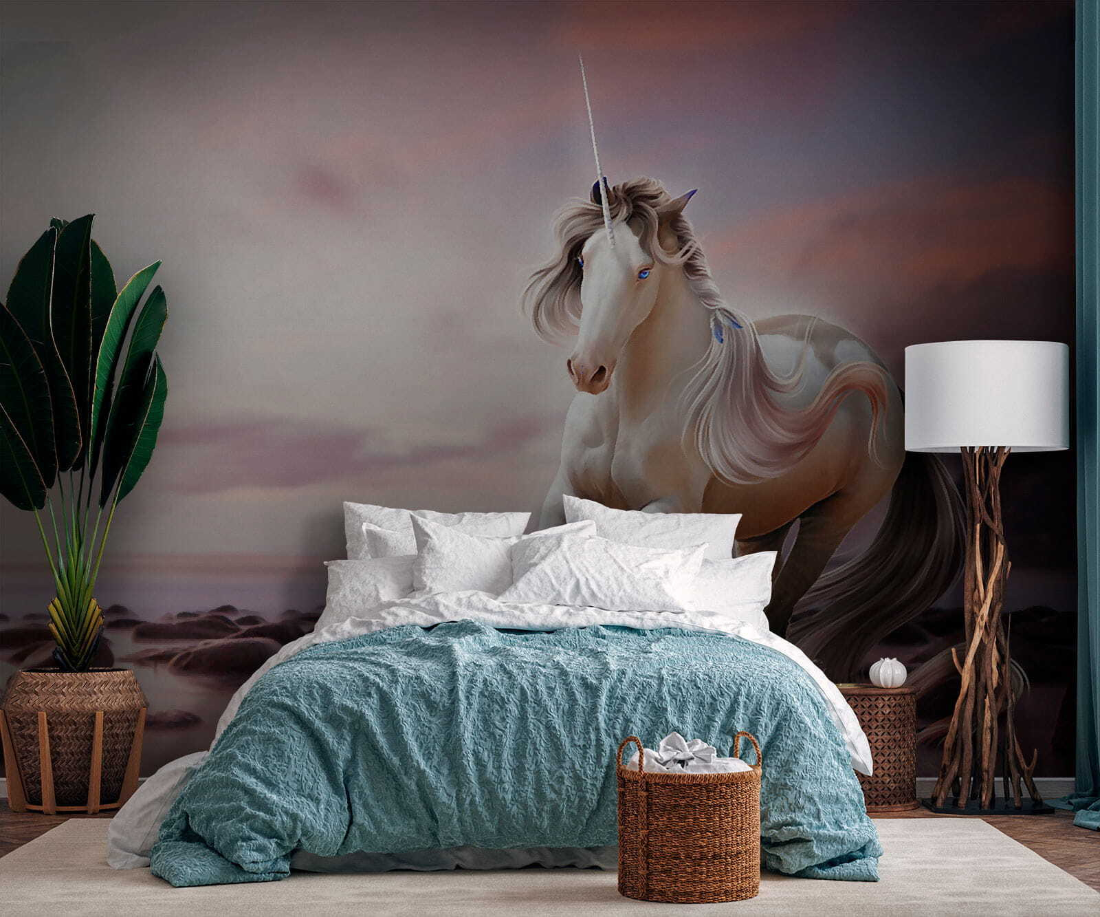 Transform any space with this enchanting wall mural featuring a mystical unicorn galloping through a serene sunset. Picture it: soft pinks and purples blending seamlessly in the sky while our unicorn friend splashes across the shoreline. It’s like a daydream come to life! Perfect for a child’s room or anywhere that could use a sprinkle of magic. Imagine cozy storytime sessions, where kids can dive into their own adventures inspired by this whimsical scene. Plus, who wouldn’t want a unicorn as their new room buddy? This mural isn’t just decor; it’s a portal to imagination!