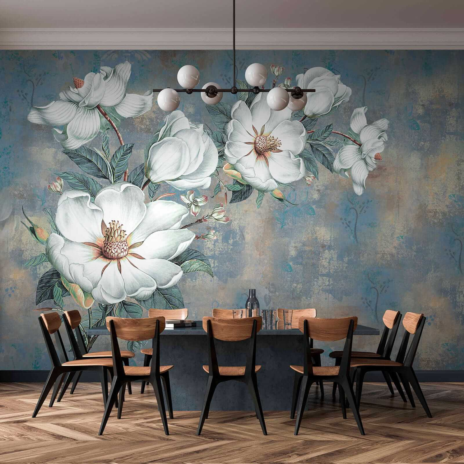 Transform any space into a floral paradise with this stunning wall mural featuring white flowers on a calming blue background. Imagine walking into a room where nature’s delicate beauty blooms right on your wall. The soft, inviting colors create a serene atmosphere, perfect for relaxing after a long day. Friends will think you’ve got a secret garden hidden behind your wallpaper. It’s not just decor; it’s like a breath of fresh air! Whether in the living room or a cozy nook, this mural adds a touch of charm that feels like a warm hug. Go ahead, let the flowers bloom in your home.