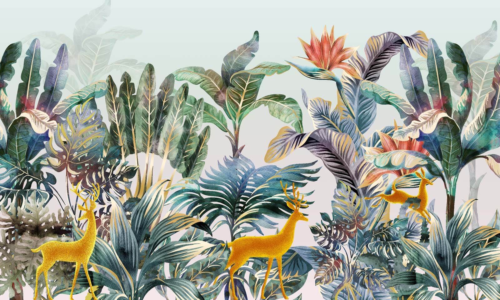 Transform any space into a vibrant oasis with this stunning wall mural featuring a playful mix of plants and animals. Imagine waking up to a lively scene where golden deer frolic among lush greenery, adding a whimsical touch to your mornings. This watercolor artwork feels like a breath of fresh air, bringing the outdoors in. It’s like having a mini jungle right in your living room, perfect for those who can’t quite keep a houseplant alive. Friends will admire the colorful layers and textures, sparking cheerful conversations. Feel the good vibes radiate every time you glance at it—it’s more than decor; it’s a daily escape!