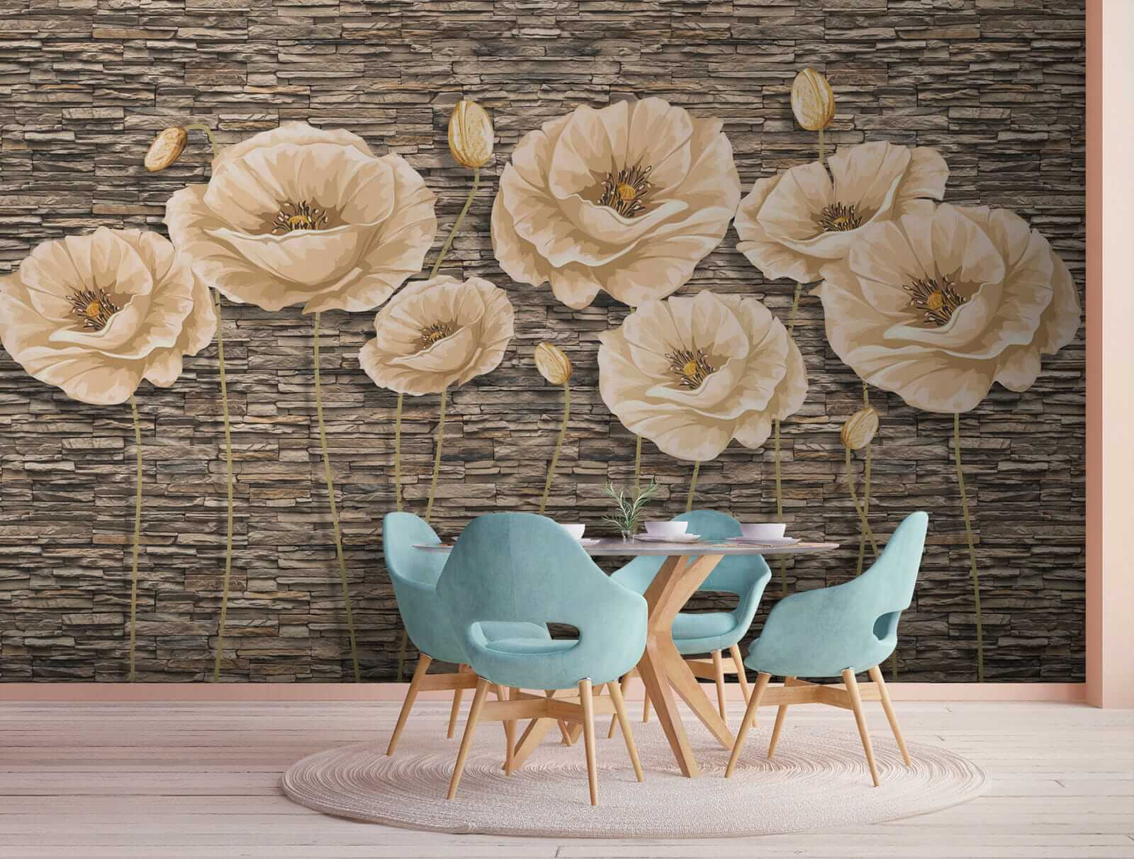 Transform any room into a serene oasis with the “Poppies on a Textured Wall” mural. Picture this: those soft, delicate flowers swaying gently like they’re dancing to a secret melody, all against a charming stone backdrop that adds just the right touch of earthy vibes. It’s like springtime took up residence on your wall!