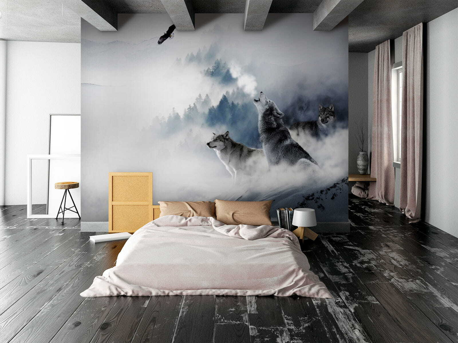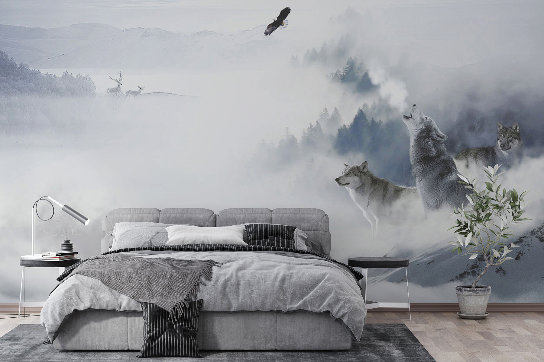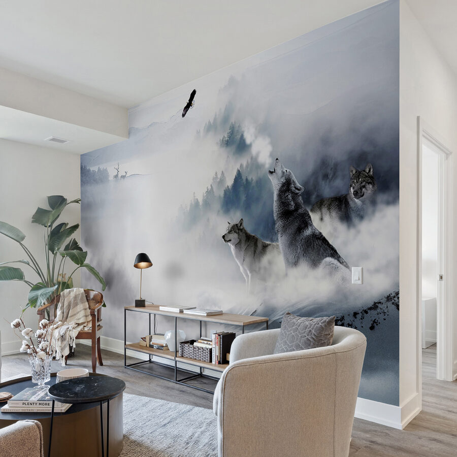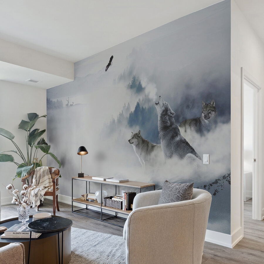 Transform your space into a winter wonderland with this stunning mural featuring wolves standing majestically in the snow. Picture it: a cozy room, perhaps with a hot drink in hand, as the howl of the wolves fills the atmosphere with a sense of wild freedom. The soft fog and the surrounding nature bring in a tranquil vibe, perfect for daydreaming or simply unwinding after a long day. It’s like having a piece of the great outdoors right inside, minus the icy chill. So go ahead, unleash your inner adventurer—this mural is ready to elevate any wall and spark a little magic in everyday life.