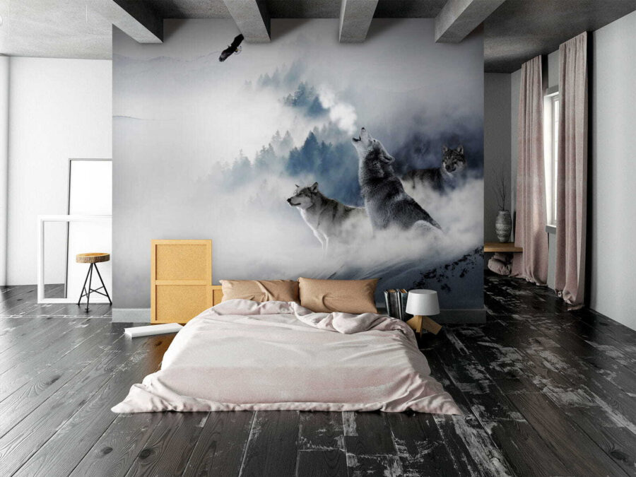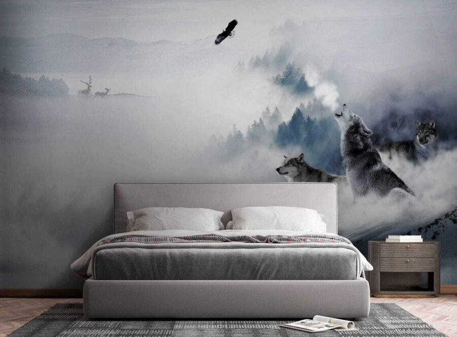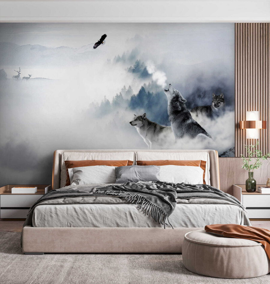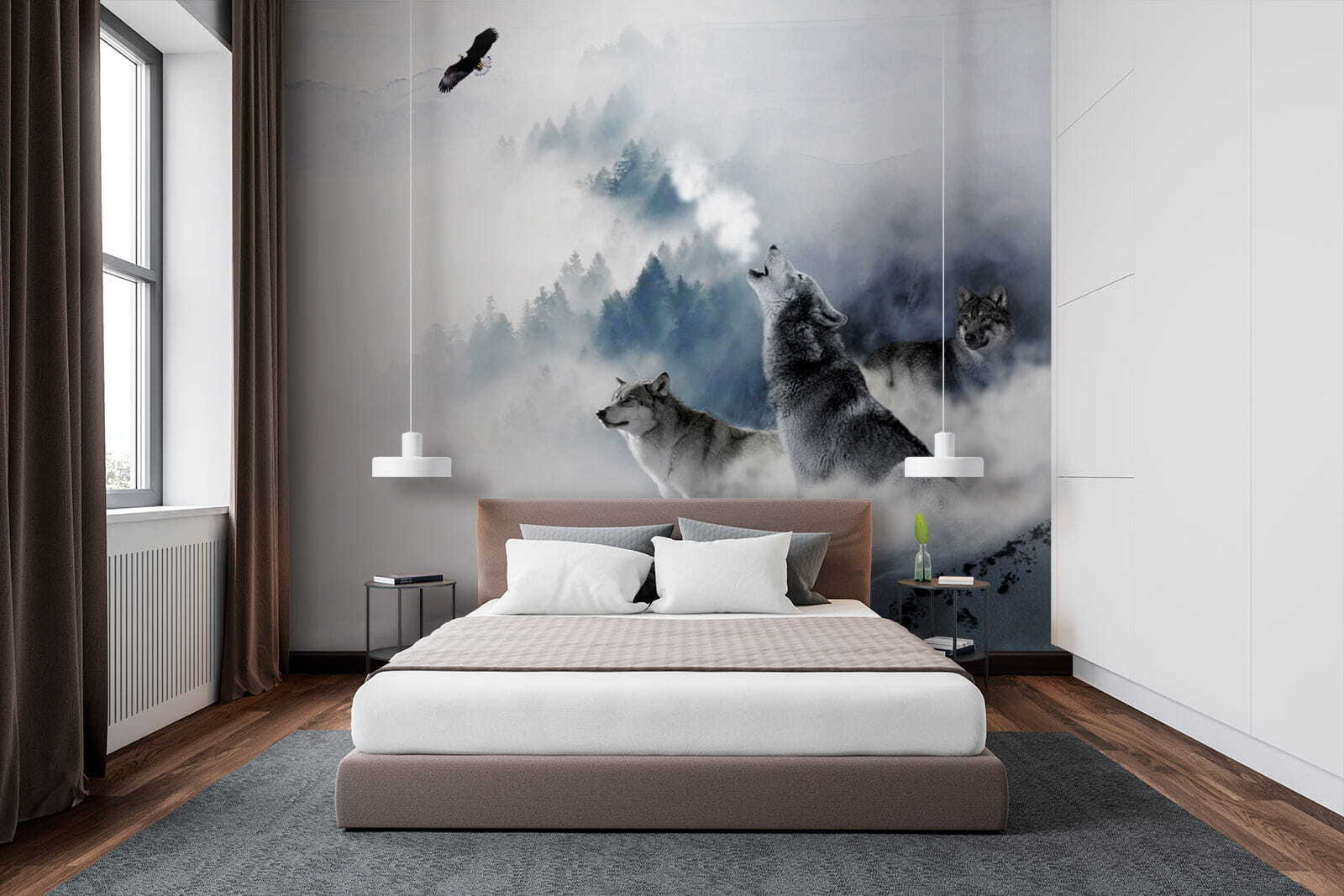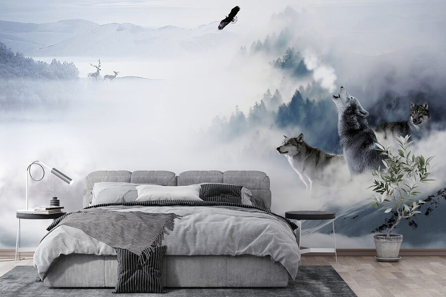 Transform your space into a winter wonderland with this stunning mural featuring wolves standing majestically in the snow. Picture it: a cozy room, perhaps with a hot drink in hand, as the howl of the wolves fills the atmosphere with a sense of wild freedom. The soft fog and the surrounding nature bring in a tranquil vibe, perfect for daydreaming or simply unwinding after a long day. It’s like having a piece of the great outdoors right inside, minus the icy chill. So go ahead, unleash your inner adventurer—this mural is ready to elevate any wall and spark a little magic in everyday life.