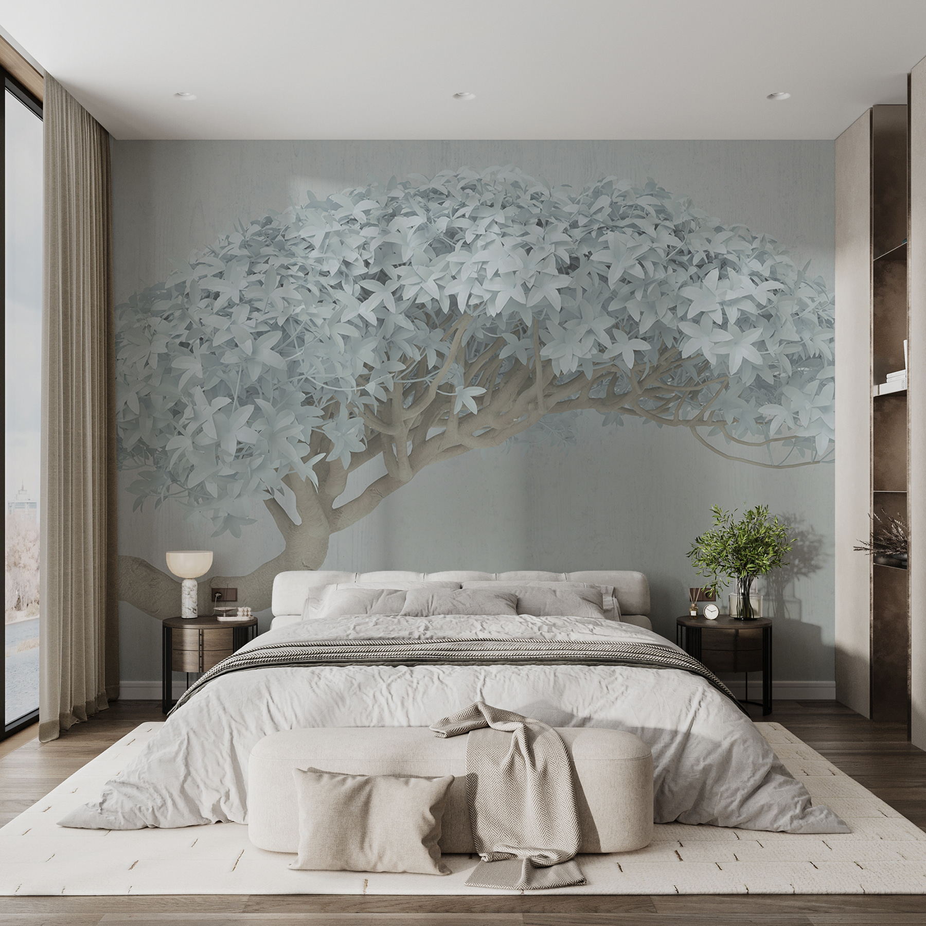 Transform any room with this stunning “Abstract Tree with White Foliage” wall mural. Imagine walking in and instantly feeling the serene vibes—like stepping into a peaceful forest without the muddy shoes. The delicate white foliage sways gently in your imagination, bringing a touch of whimsy and calm to your space. Perfect for that awkward wall that just needs a little love, or maybe to liven up a cozy reading nook. It’s not just art; it’s an invitation to relax, sip some tea, and lose yourself in daydreams. Who wouldn’t want a magical tree in their life?