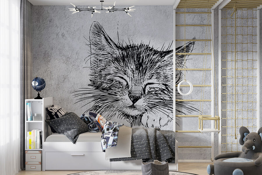 Imagine walking into a room where a cozy little kitten seems to be dreaming right on your wall. This wall mural captures that sweet moment of a sleeping kitten, all drawn in charming detail. It’s perfect for cat lovers or anyone wanting to add a touch of whimsy to their space. Every glance at this adorable feline might just bring a smile or a little giggle—because who can resist the cuteness? Pair it with soft rugs or playful cushions, and it transforms a space into a haven of warmth. It’s like inviting a furry friend into your home, minus the litter box.