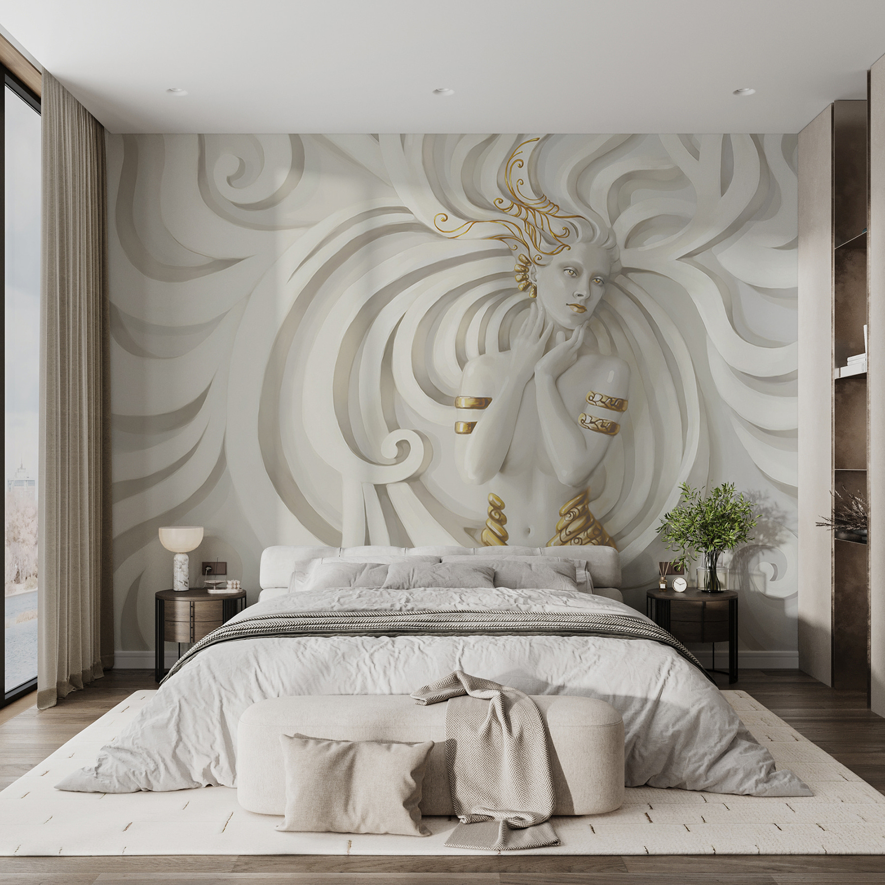 Transform any room with this stunning wall mural featuring an elegant figure enveloped in swirling patterns. Imagine walking into a space where artistry meets whimsy, creating an instant conversation starter. This mural dances around the idea of movement, making walls feel alive. You could almost hear the gentle whispers of creativity inspiring you every day. Picture a cozy reading nook, where the figure seems to be lost in thought, inviting you to do the same. It’s a perfect way to add a playful yet sophisticated touch—like a good cup of coffee on a rainy day, comforting and invigorating all at once. So why not make your walls a masterpiece?