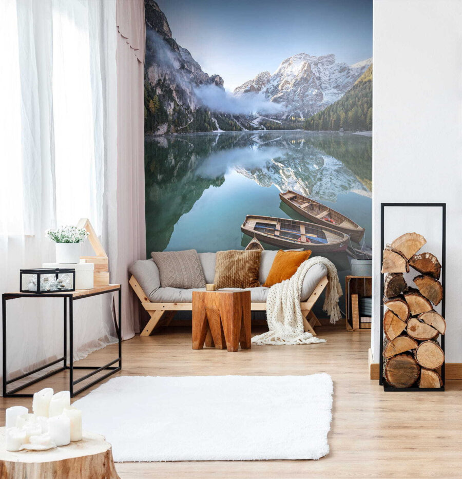 Imagine stepping into a space that feels like an escape to a hidden gem in the mountains. This stunning wall mural, “Boats Rest on Serene Mountain Lake,” captures that exact magic. Picture it—calm waters reflecting majestic peaks, with rustic boats just waiting for an adventure. The vibrant greens and blues mingle effortlessly, creating a serene vibe that’s perfect for any room. Whether in a cozy reading nook or a bright dining area, it invites tranquility. It’s like inviting nature right inside! Who wouldn’t want to feel that sense of peace every day? It’s almost as if the mountains are whispering tales of adventure, just waiting for someone to listen. Perfect backdrop for a relaxing evening or a chatty gathering—this mural truly brings a slice of the great outdoors home.