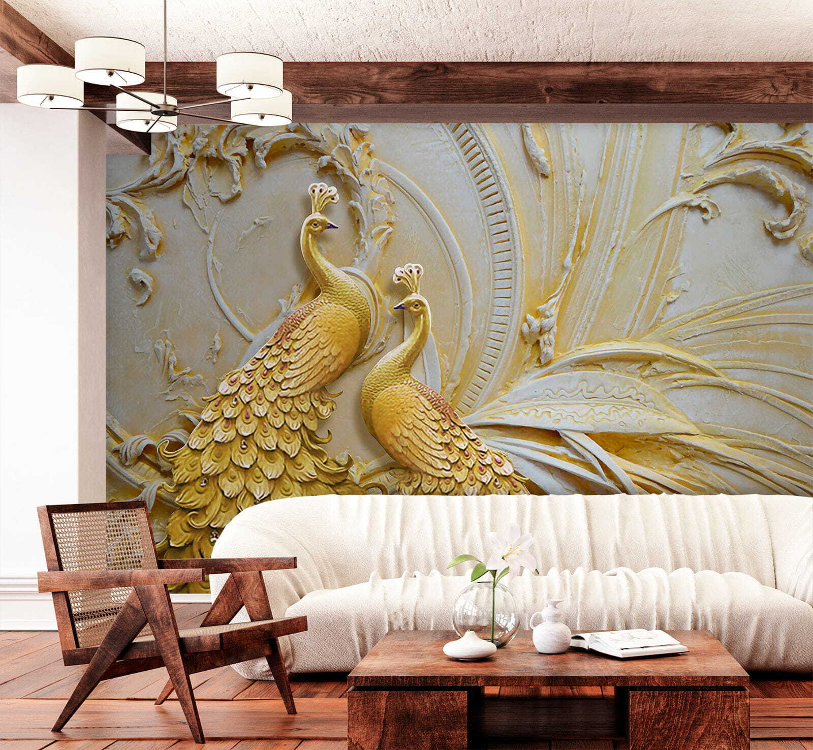 Imagine stepping into a room where two elegant peacocks seem to come alive right on the wall. This mural brings a splash of nature’s charm into your space, with intricate detailing that makes it almost feel like you could touch the feathers. The soft hues create a calm vibe, perfect for relaxing evenings or lively gatherings. Friends will definitely do a double-take when they spot it! It’s like having a piece of art that tells a story—one that invites warmth and charm. Just think how cozy it’ll feel, with those beautiful birds keeping watch, turning an ordinary wall into a stunning focal point.