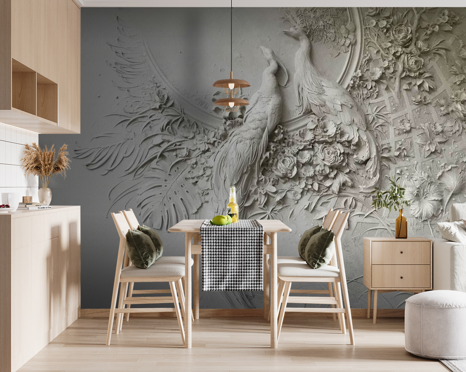 Transform a plain space into an enchanting oasis with the mural featuring elegant peacocks and blossoms. Imagine walking into a room where two majestic birds seem to dance among lush flowers, effortlessly bringing serenity and charm. It’s the kind of mural that makes you pause, take a deep breath, and think, “Wow, I’m home.” Whether it’s in a cozy living room or a tranquil bedroom, this artwork sparks conversation and dream-like vibes. Each glance reveals new details, making it feel like each day is a fresh experience. Perfect for those who crave a touch of whimsy!