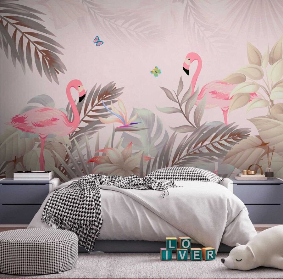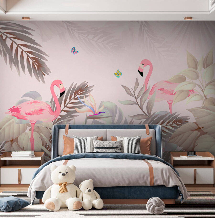 Transform your space with the enchanting “Wall Murals Blue and Pink Butterfly.” Imagine stepping into a tropical paradise where flamingos strut and butterflies flit about. This mural brings a splash of nature indoors, creating a vibrant backdrop that feels like a gentle hug from Mother Nature herself. Perfect for a living room or a kid’s room, it sparks joy and invites curiosity. Picture sipping coffee while gazing at this stunning scene—your worries might just fly away! Bring a touch of whimsy to your walls and let your imagination soar!