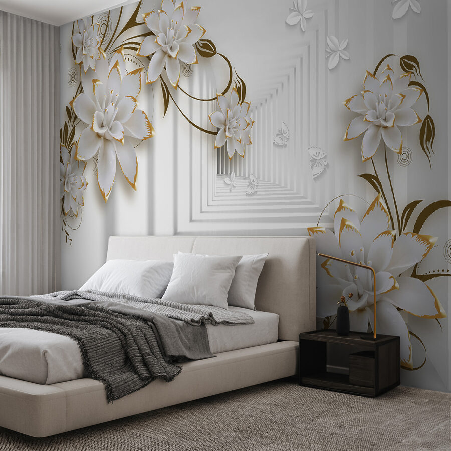 Every glance feels like a mini escape to a floral paradise. Perfect for cozy corners or making a statement in larger areas, this mural’s 3D effect adds depth, almost as if the flowers are about to pop off the wall and join the party. Fun fact: they say flowers brighten your day, and these might just turn your everyday routine into a botanical adventure. Who knew transforming a space could feel like a quiet retreat?