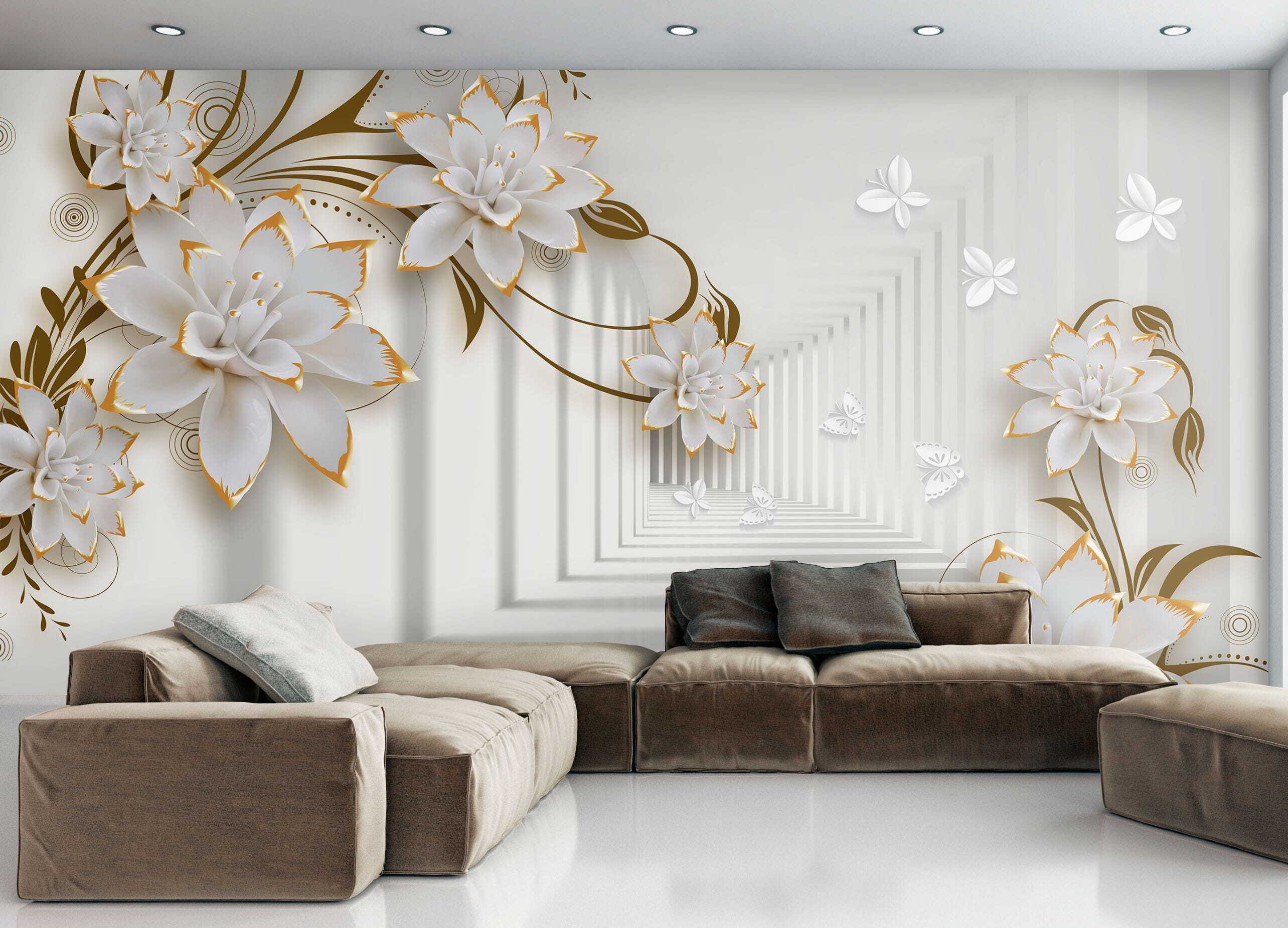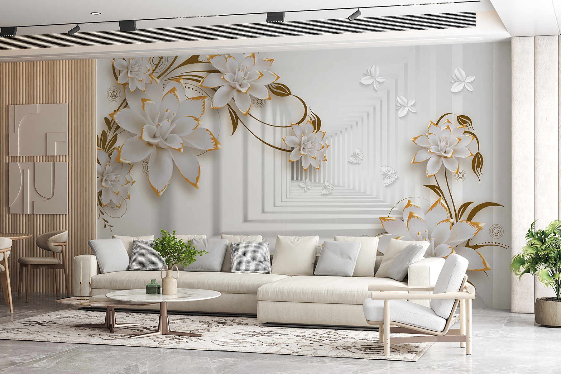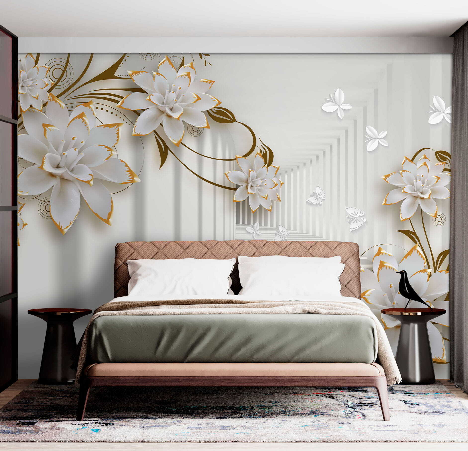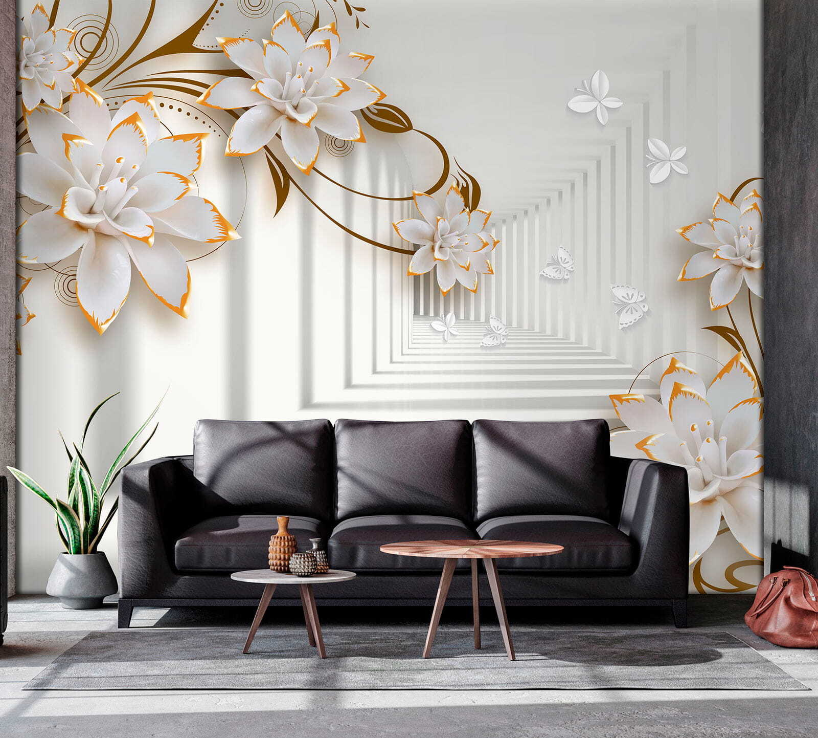 Every glance feels like a mini escape to a floral paradise. Perfect for cozy corners or making a statement in larger areas, this mural’s 3D effect adds depth, almost as if the flowers are about to pop off the wall and join the party. Fun fact: they say flowers brighten your day, and these might just turn your everyday routine into a botanical adventure. Who knew transforming a space could feel like a quiet retreat?