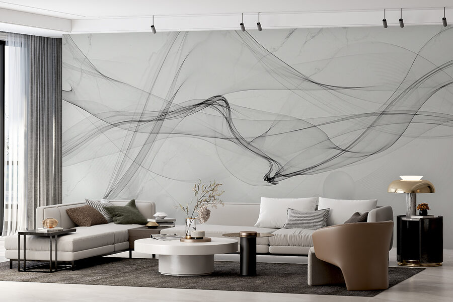 Imagine stepping into a room where waves of abstract elegance wash over you. This mural, with its soft black lines dancing on a marble background, creates a vibe that’s both calming and chic. It’s like a gentle breeze on a sunny day, perfect for those moments when you just want to unwind with a good book or sip some tea. Picture it in a cozy living room or a chic office—friends will definitely want to linger. Plus, those subtle curves bring a sense of flow, making spaces feel bigger and brighter. Who knew walls could spark such joy?