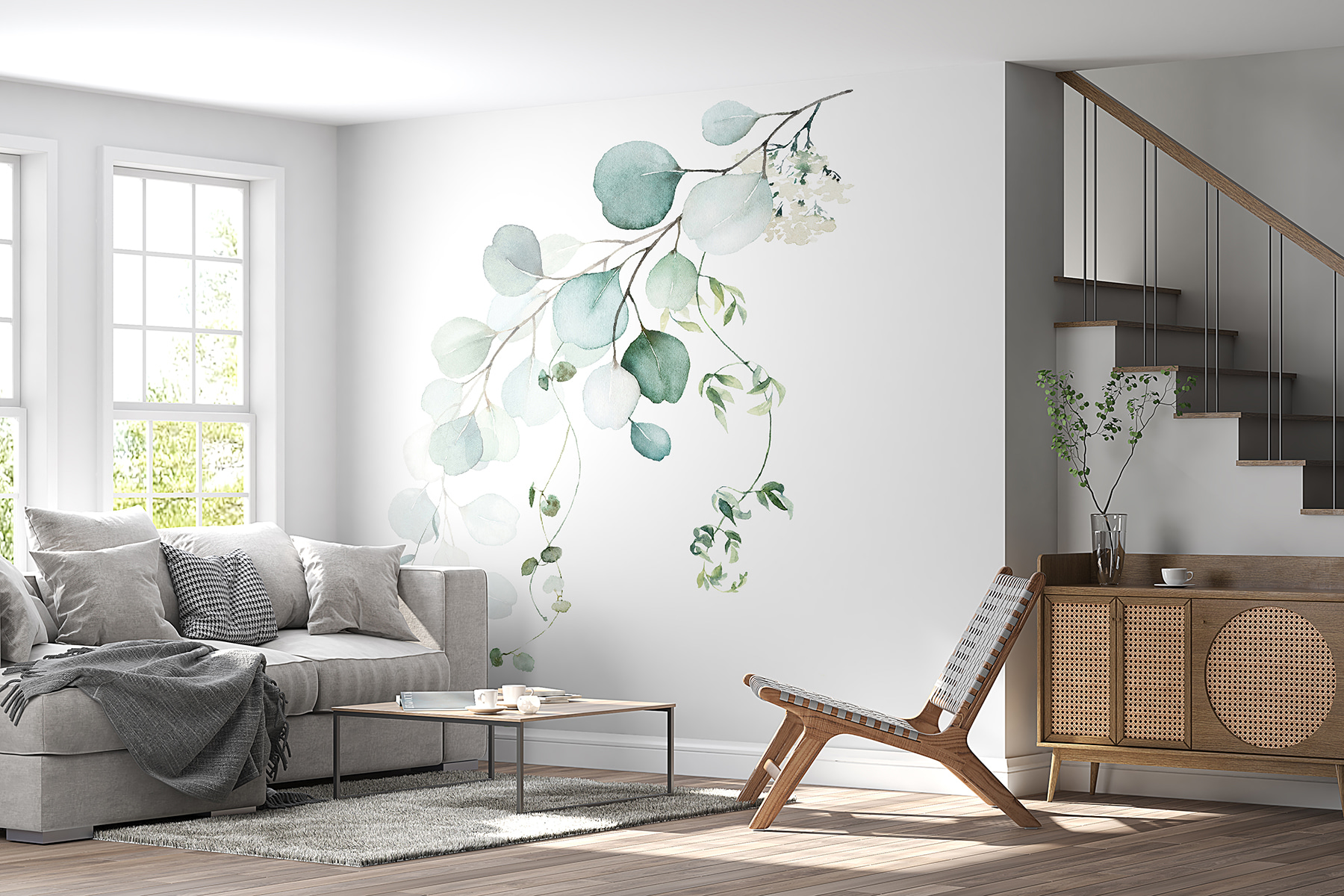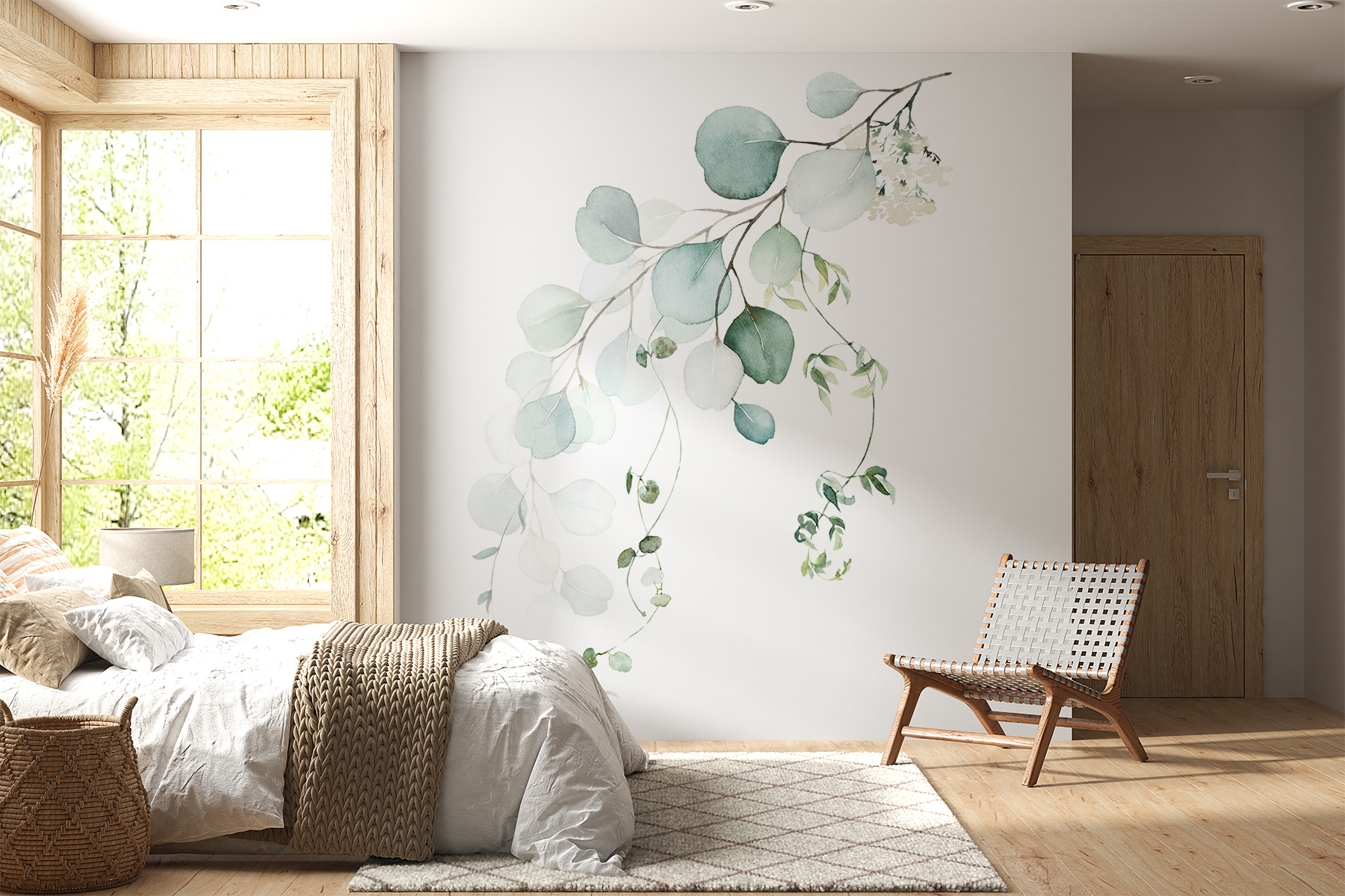 Imagine stepping into a room where the walls seem to breathe life. This wall mural, with its delicate watercolor greenery, brings a light and airy vibe to any space. It’s like having a mini forest tucked into your home—without the pesky bugs. The soft hues dance across a white backdrop, creating a serene escape right at home. Picture sipping coffee while gazing at those gentle leaves, feeling the stresses of the day fade away. It’s more than decor; it’s a little oasis that whispers calm vibes and creativity. Perfect for any room that needs a touch of nature’s charm!