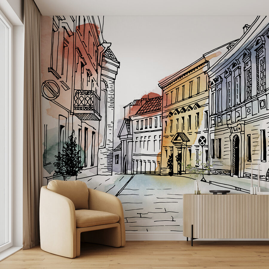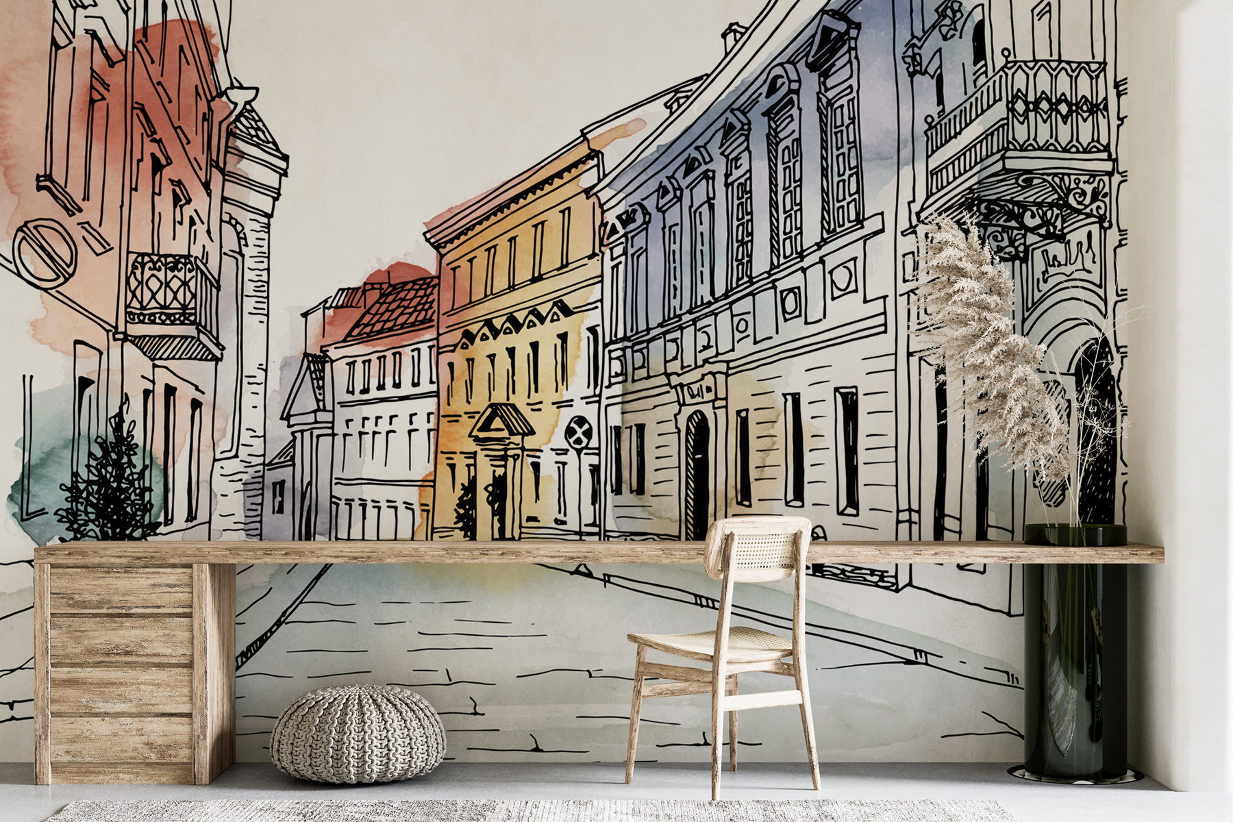 Transform your walls into a charming escape with this delightful wall mural featuring a captivating drawing of a building. It’s like stepping into a quaint little street in a European town, complete with artistic details that spark curiosity and a touch of nostalgia. Imagine sipping coffee while gazing at this mural, feeling as if you’re in a hidden piazza, away from the chaos. The warm tones and playful linework effortlessly breathe life into any room. Perfect for a cozy den or an inspiring workspace, it’s sure to be a conversation starter!