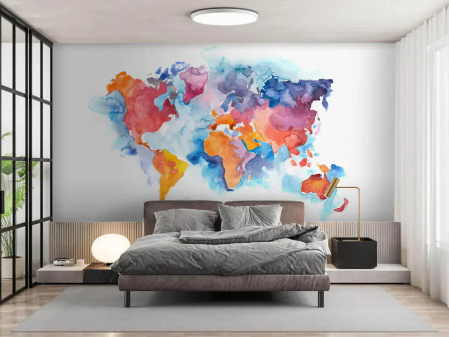 Transform your space with this stunning wall mural, “Red Spot on a White Surface.” It’s like a splash of watercolor magic, bringing a sense of wanderlust right into your home. Picture it: guests walking in, their eyes lighting up as they trace the colorful swirls around the globe.