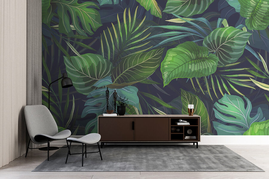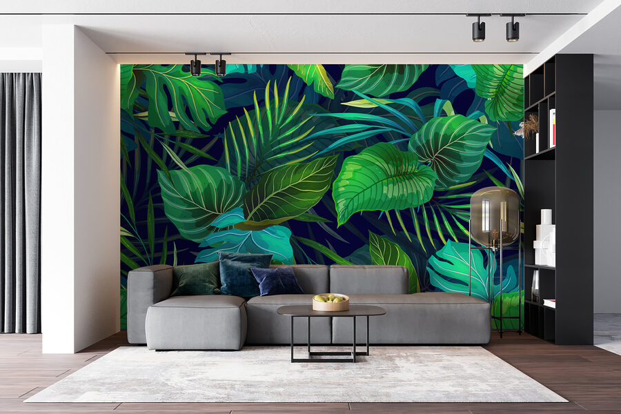 Transform any room into a lush getaway with this vibrant jungle foliage mural. Imagine stepping into a serene oasis right at home. The rich greens and deep blues dance across the wall, creating an atmosphere that’s both calming and invigorating—like a breath of fresh air. It’s perfect for anyone dreaming of a tropical escape, without having to pack their bags. Plus, the detail in those leaves? Simply stunning! Just picture sipping your morning coffee surrounded by this botanical beauty—instant mood booster! This mural is more than decor; it’s an experience waiting to unfold.