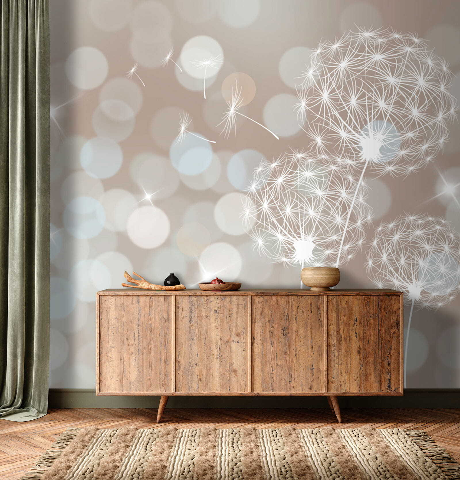 Transform your space into a whimsical wonderland with the “Dreamy Dandelions Drifting in Light” mural. Picture this: delicate dandelions, softly glowing, catching that perfect light, as if they’re floating on air just waiting for a wish. This design doesn’t just brighten a room; it invites daydreams and nostalgia, like childhood afternoons spent blowing dandelion seeds into the breeze. The gentle colors and ethereal feel create a serene vibe—perfect for a cozy reading nook or a cheerful entryway. It’s like bringing a slice of nature indoors, minus the allergies! Just a sprinkle of magic to make every glance feel a little more special.