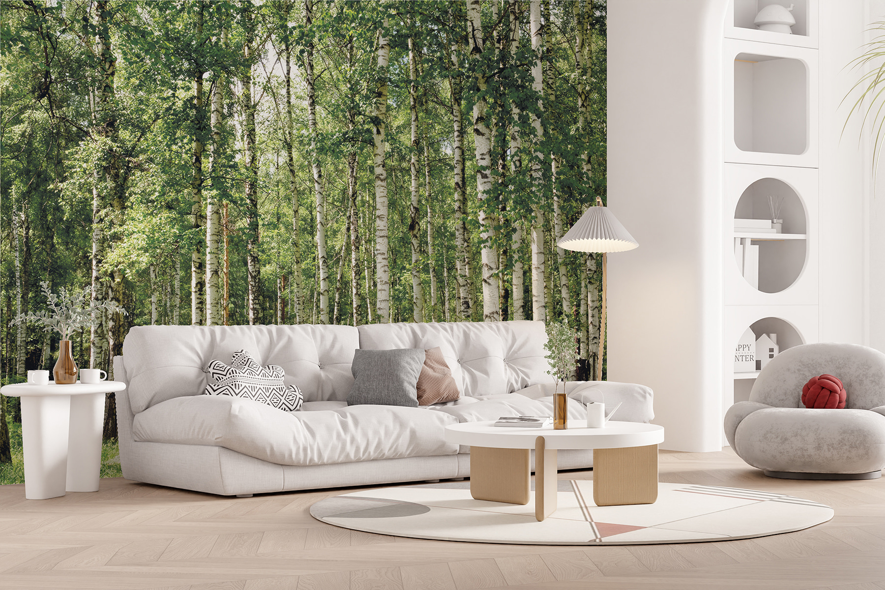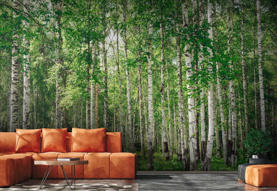 Imagine stepping into a serene forest without ever leaving your home. This stunning wall mural of trees with lush green leaves brings the beauty of nature right to your walls. The birch trees stand tall, inviting, and a bit cheeky, almost like they’re sharing secrets amongst themselves. You might feel the gentle rustle of leaves or hear the whispering breeze as you sink into your favorite chair, lost in thought. Ideal for any space craving a touch of tranquility, this mural makes every day feel like a peaceful stroll through the woods—who wouldn’t want that?