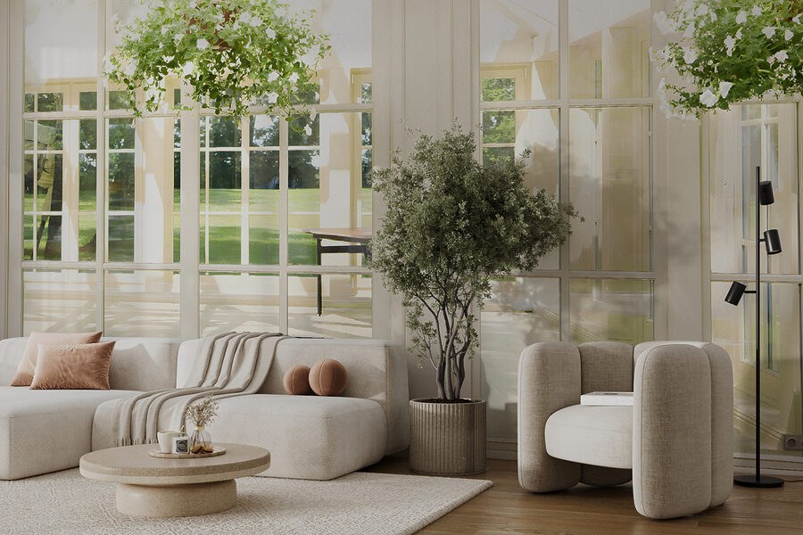 1 review for Wall murals Sunlit room with hanging plants