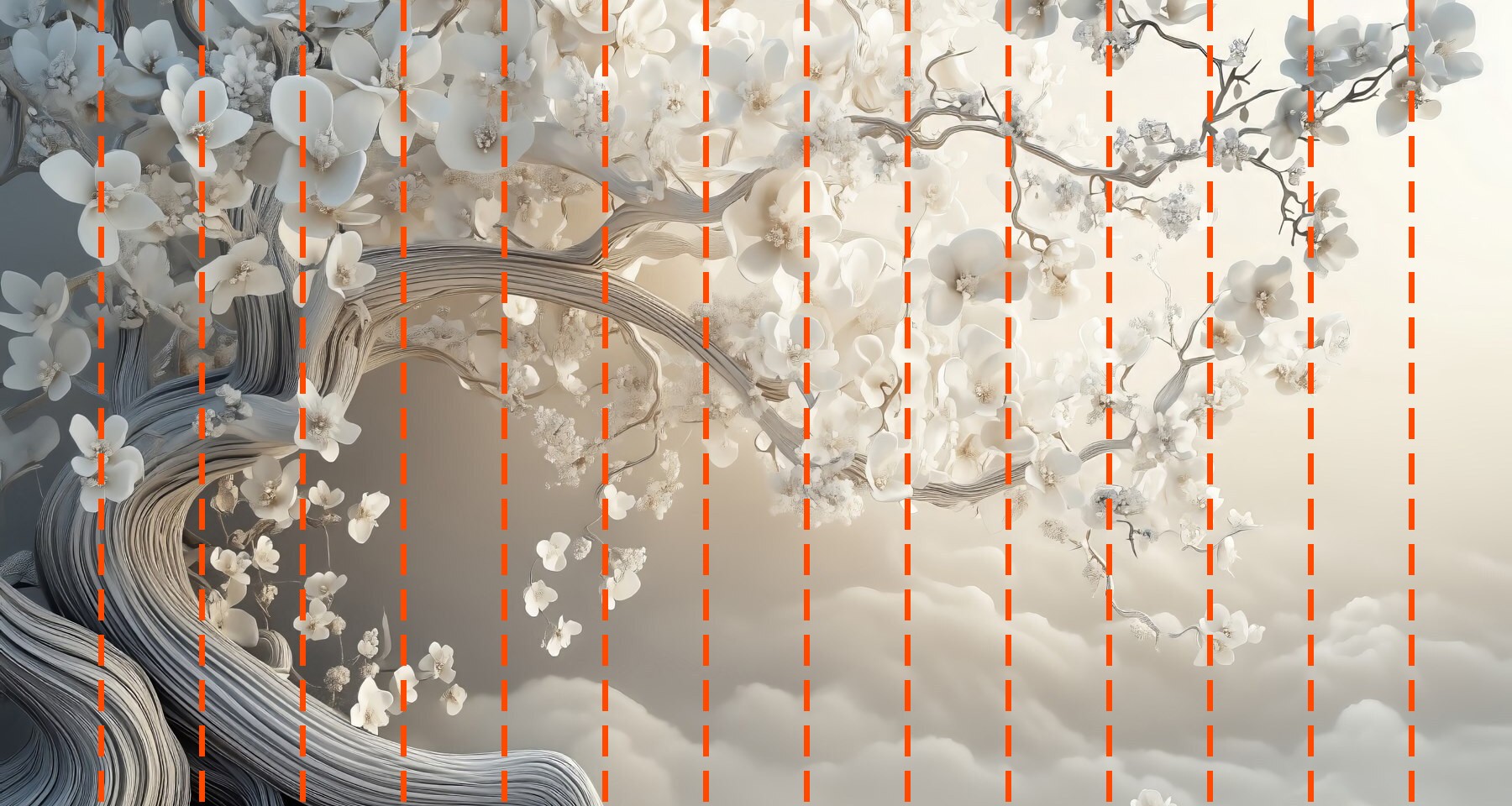 Your wallpaper will be prepared according to the dimensions you provided during the ordering process. The canvas will be divided into convenient sections, each up to 50 cm in width.