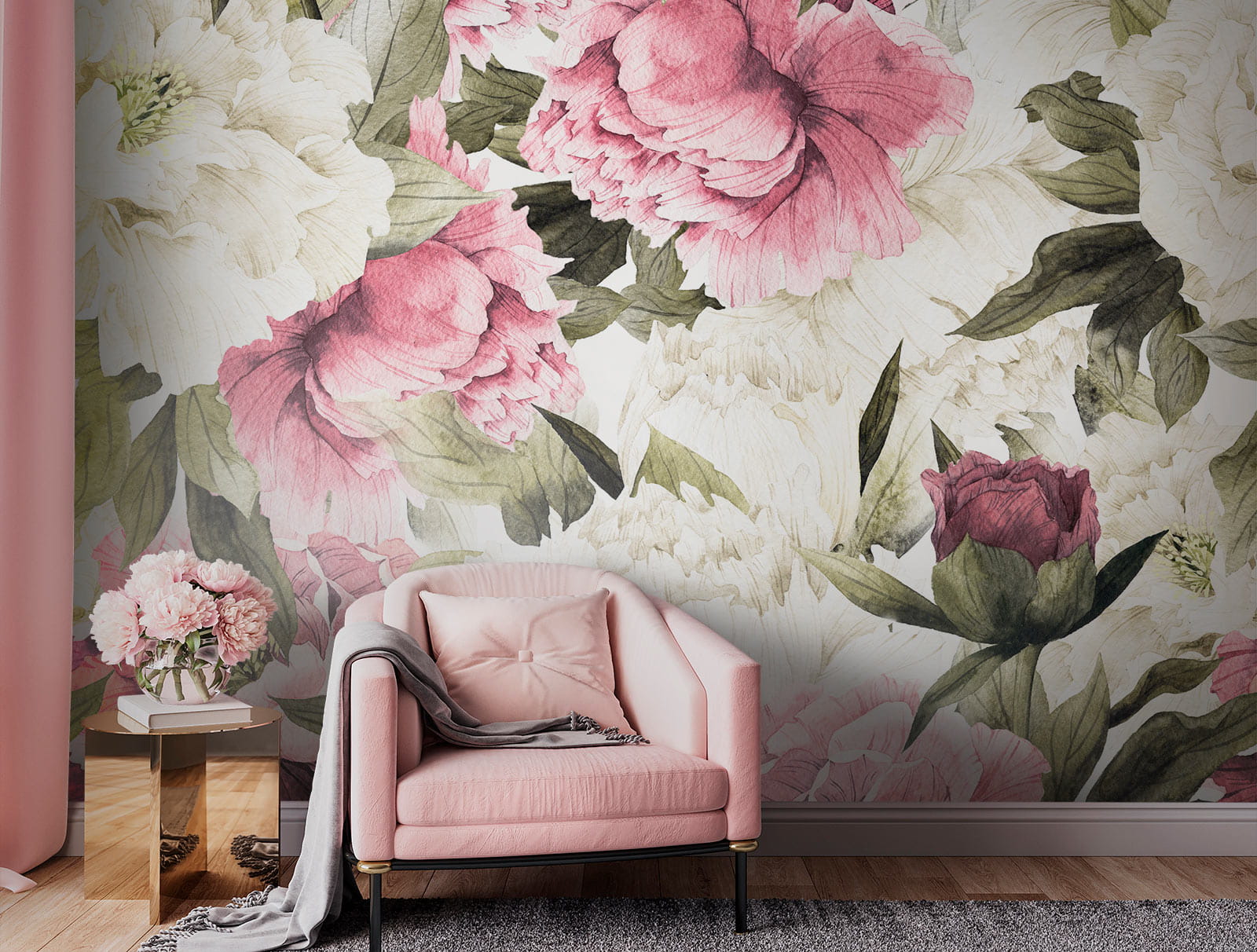 Transform your space with this enchanting wall mural of pink and white flowers. It’s like bringing a garden indoors without all the dirt. Imagine waking up to these blooms, brightening your mornings and making every day feel like spring. The soft hues add a gentle touch, perfect for a cozy nook or maybe that wall that’s been feeling a bit too lonely. Friends might compliment it, asking where they can get one – it’s a guaranteed conversation starter. Plus, who wouldn’t want to be surrounded by such beauty? Just be careful; it might make your other walls a tad jealous!