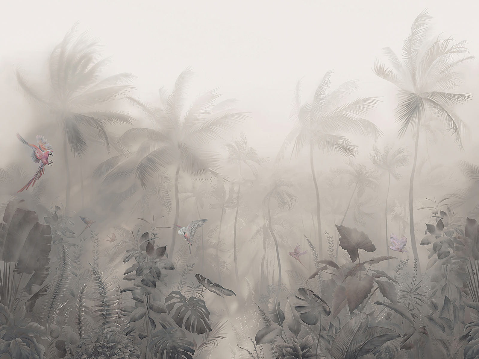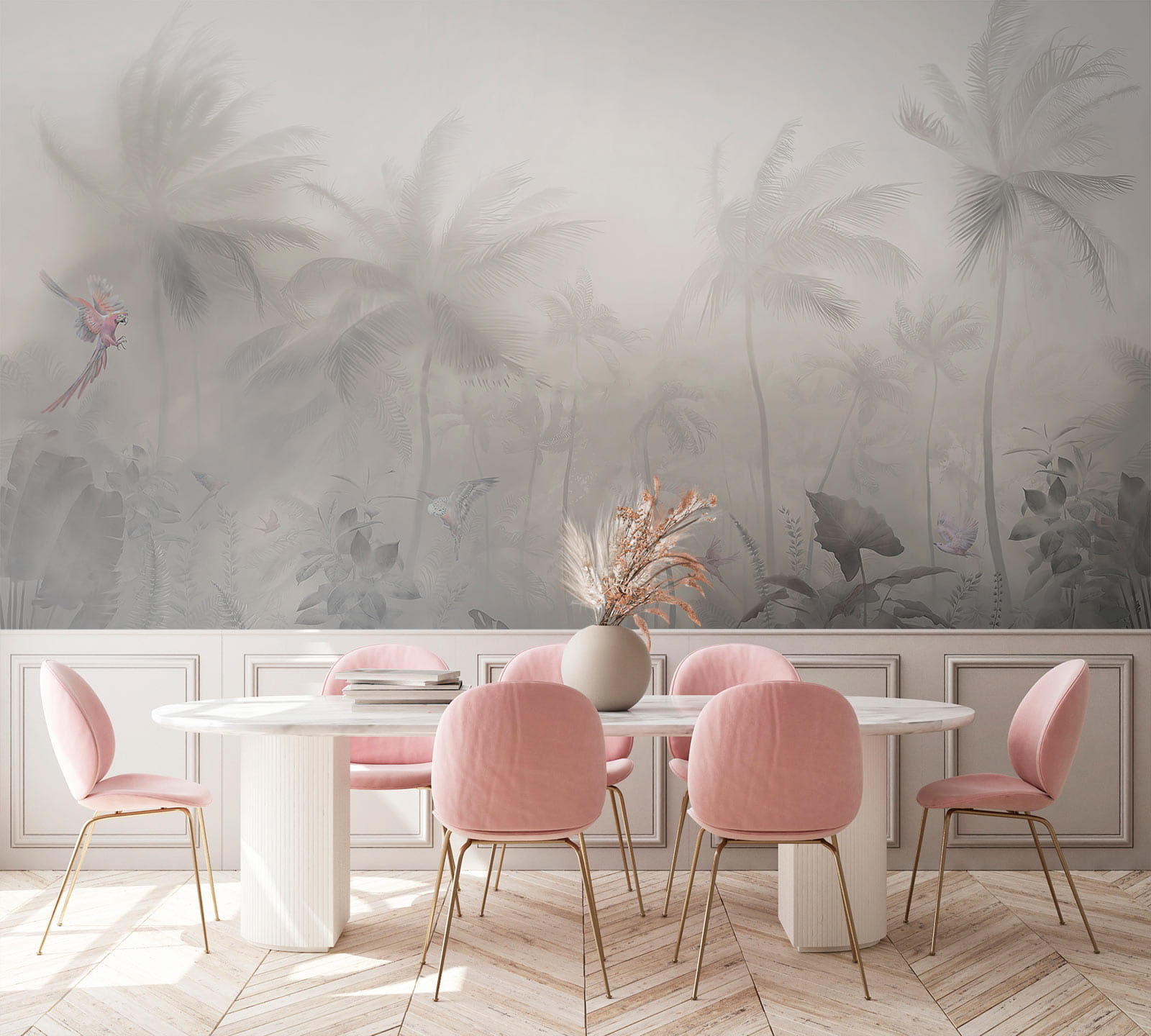 Transform any space into a dreamy escape with this enchanting wall mural—“Foggy Forest with Palm Trees and Butterflies.” It’s like stepping into a serene tropical hideaway every time you walk by. Those delicate creatures flitting about add a touch of whimsy, making you feel a bit like you’re in a fairytale. The soft misty hues set a tranquil mood, perfect for daydreaming or cozy chats over coffee. Imagine it behind a soft armchair, turning your reading nook into a personal oasis. Who wouldn’t feel relaxed here? This mural is your ticket to that easy-breezy island vibe without the need for sunscreen!