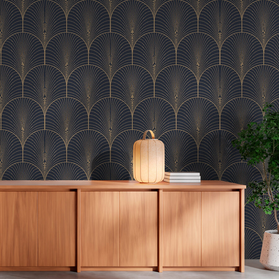 Imagine walking into a room that feels like a chic little escape, right? The “Elegant Art Deco Fan Pattern” mural does just that—bringing a playful yet sophisticated vibe to any space. These sweeping curves dance over a deep, soothing background, making it perfect for cozy corners or that big empty wall you’ve stared at too long. It whispers style without shouting, creating an inviting atmosphere. Friends will definitely pause to admire—as if they’ve just stepped into a stylish café. Whether it’s for a serene reading nook or a social hangout, this mural’s got your walls covered. It’s a fun, easy way to jazz up your decor—the kind that makes you smile every time you walk past!