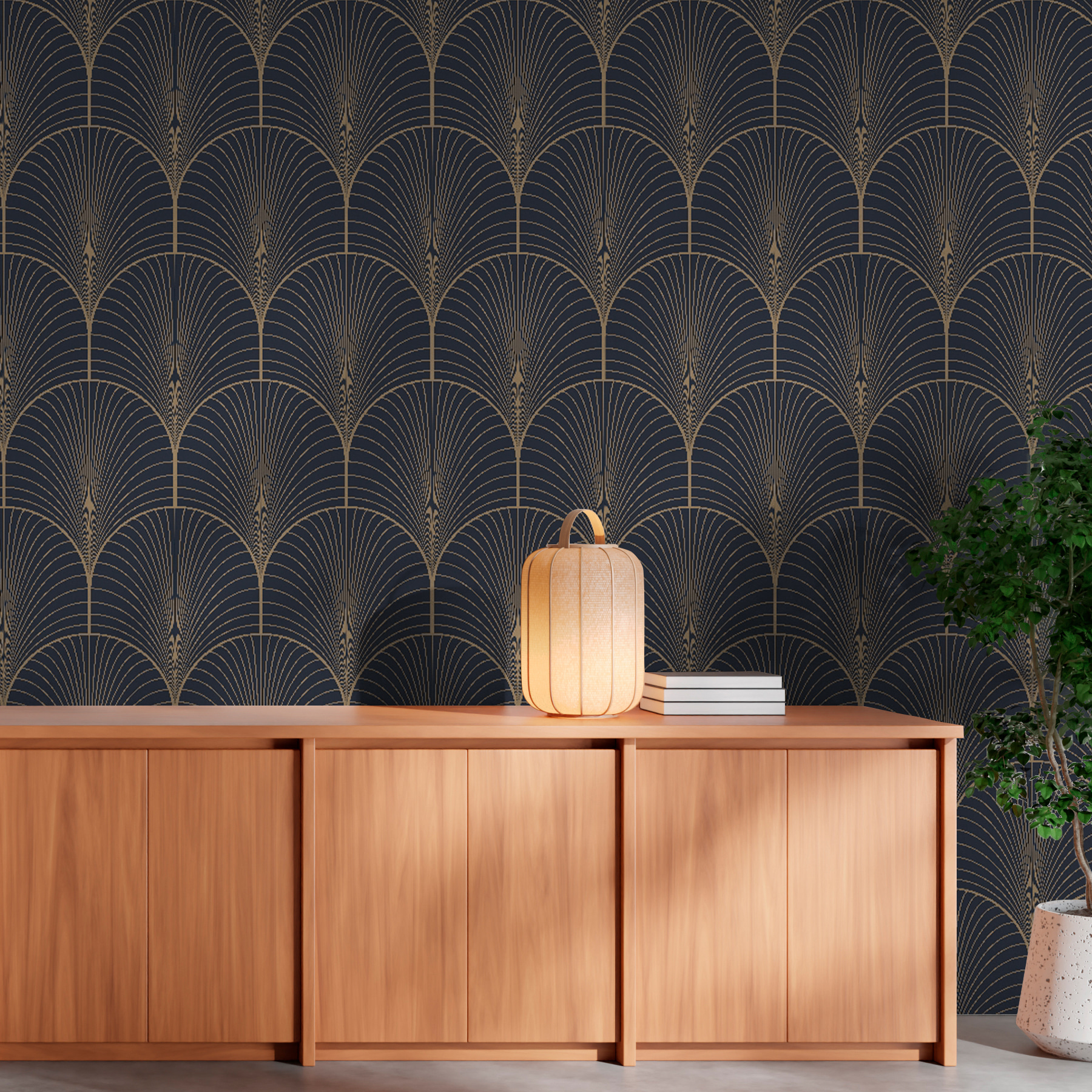 Imagine walking into a room that feels like a chic little escape, right? The “Elegant Art Deco Fan Pattern” mural does just that—bringing a playful yet sophisticated vibe to any space. These sweeping curves dance over a deep, soothing background, making it perfect for cozy corners or that big empty wall you’ve stared at too long. It whispers style without shouting, creating an inviting atmosphere. Friends will definitely pause to admire—as if they’ve just stepped into a stylish café. Whether it’s for a serene reading nook or a social hangout, this mural’s got your walls covered. It’s a fun, easy way to jazz up your decor—the kind that makes you smile every time you walk past!