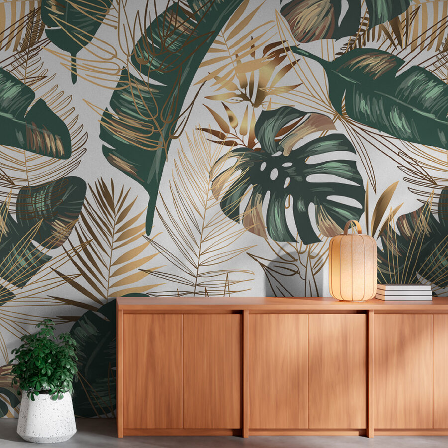 Transform any room into a lush oasis with the Wall Murals Tropical Leaves print. Imagine stepping into a vibrant jungle without ever leaving your home. This mural bursts with rich greens and soft gold accents, creating a dreamy vibe that feels both modern and relaxed. It’s like wrapping your walls in nature’s embrace. Picture Saturday mornings sipping coffee while surrounded by these stunning patterns—seriously, who wouldn’t feel inspired? Add a splash of energy to your space and let the leaves dance. It’s just the refreshing lift your walls need!