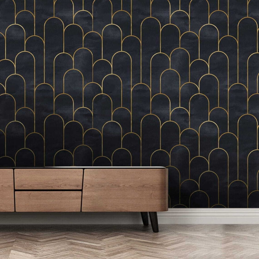 Transform your space with this chic wall mural featuring elegant black arches that play nicely with subtle lines. Imagine walking into a room where the walls whisper sophistication, drawing the eye without being too loud. It’s like a stylish friend who knows just how to make an entrance. Whether it’s a cozy reading nook or a trendy living room, this design adds depth and intrigue that sparks conversation. The combination of dark hues and graceful shapes creates a warm ambiance, inviting relaxation and inspiration. Who wouldn’t want to bask in such artistry every day? Perfect for anyone looking to elevate their decor without breaking a sweat—or the bank!