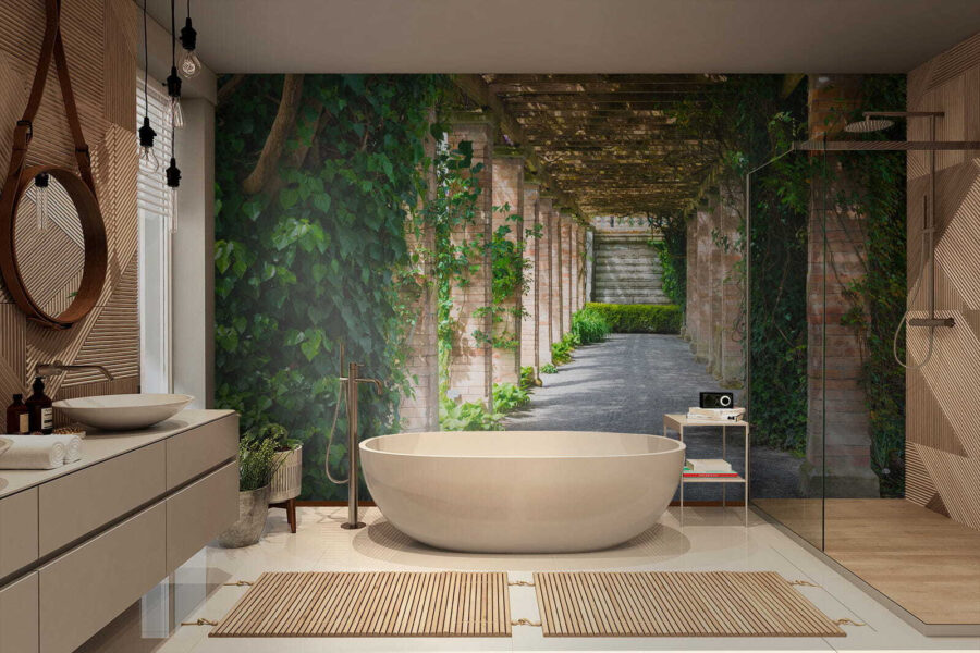 Transform any room into a serene escape with this stunning mural featuring a row of pillars entwined with lush vines. It’s like bringing a secret garden right into your home—perfect for those days when fresh air feels just out of reach. Imagine stepping into a space where nature’s beauty wraps around you, creating a cozy nook for reading or sipping tea. The 3D effect pulls you in, making walls feel alive, almost like you could stroll through this enchanting archway. It’s more than decor; it’s a daily breath of fresh air, without the pesky bugs!