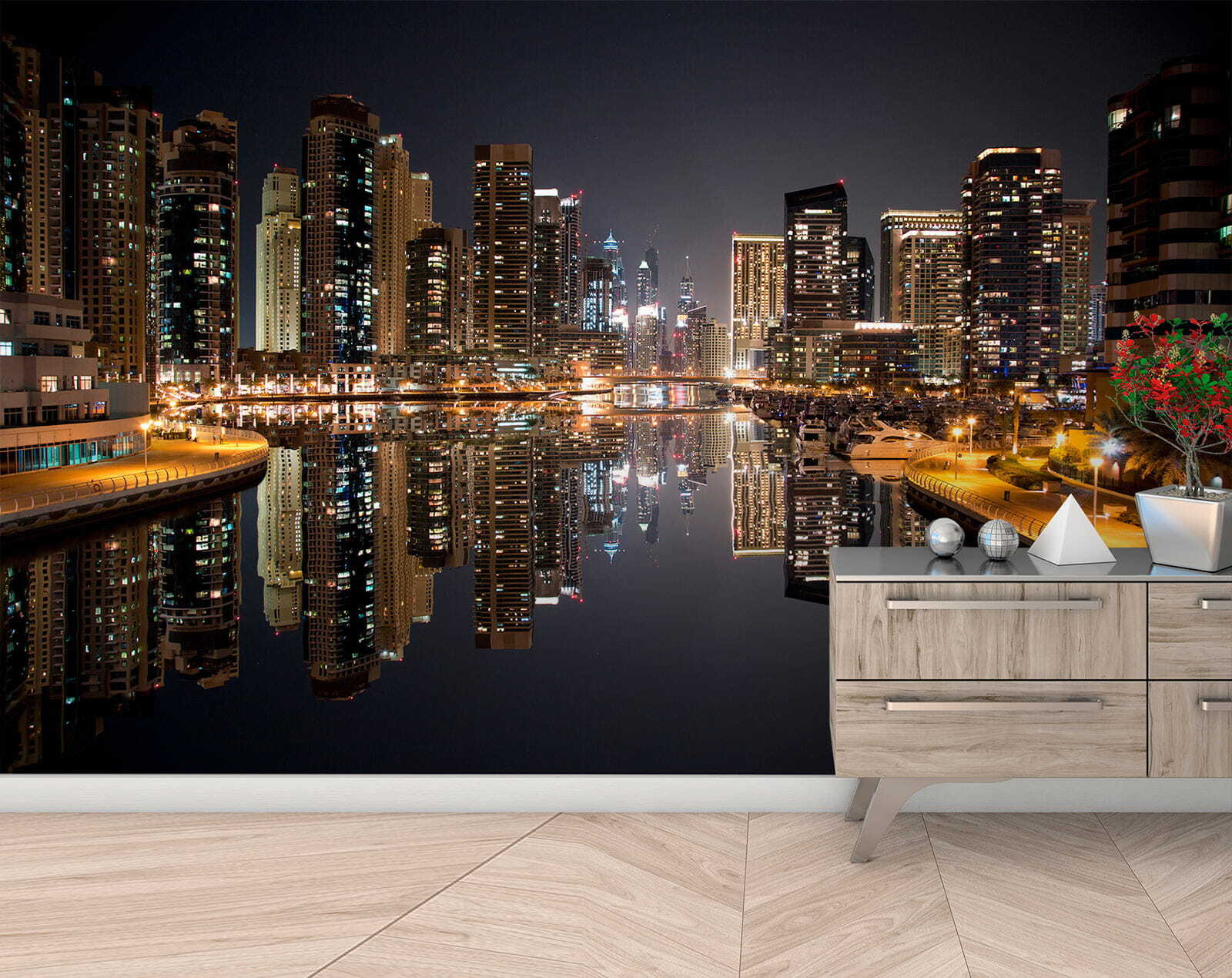 Transform your space with this stunning wall mural, “Wall Murals Building with Many Windows at Night.” Imagine sinking into your favorite chair after a long day, and as you gaze at this vibrant cityscape, you’re instantly transported to a lively night, where skyscrapers glitter like stars. The reflection on the water adds a magical touch, almost like a mini night sky right in your living room. Friends will be stopped in their tracks, whispering about the urban charm it brings. It’s not just decor—it’s a vibe, a conversation starter, and a little slice of city life that makes home feel a bit more special. Your walls deserve this spark of joy!