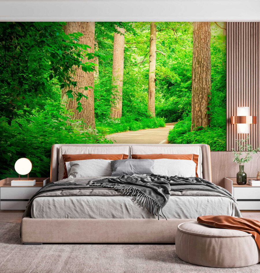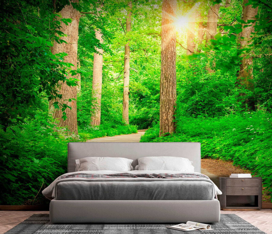 Transform your space with a burst of nature! This mural, “Sunlight through lush green forest,” is like a slice of the outdoors, bringing life to any wall. Imagine walking down that winding path, sunlight filtering through the trees, and the scent of fresh leaves lingering in the air. It’s a little escape right in your home. Perfect for making a small room feel bigger—or just adding a touch of tranquility where you need it. Friends will wonder if you’ve got a secret garden going on. Who wouldn’t want that calm vibe? Plus, this beauty pulls you into nature without the bug bites. So go ahead, let your walls breathe!