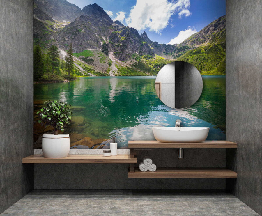 Transform any wall into a serene escape with this stunning mural featuring a mountain lake reflecting a clear sky. Just imagine basking in the tranquil vibes every day. People might find themselves daydreaming about getting lost in nature, right from their living room! The gentle hues invite a sense of calmness, making it a perfect backdrop for cozy chats or solo thinking sessions. Placing this mural in a space can instantly brighten the mood—picture sipping morning coffee while feeling like you’re by the water, enjoying the peaceful ambiance without leaving home. A true nature lover’s delight!