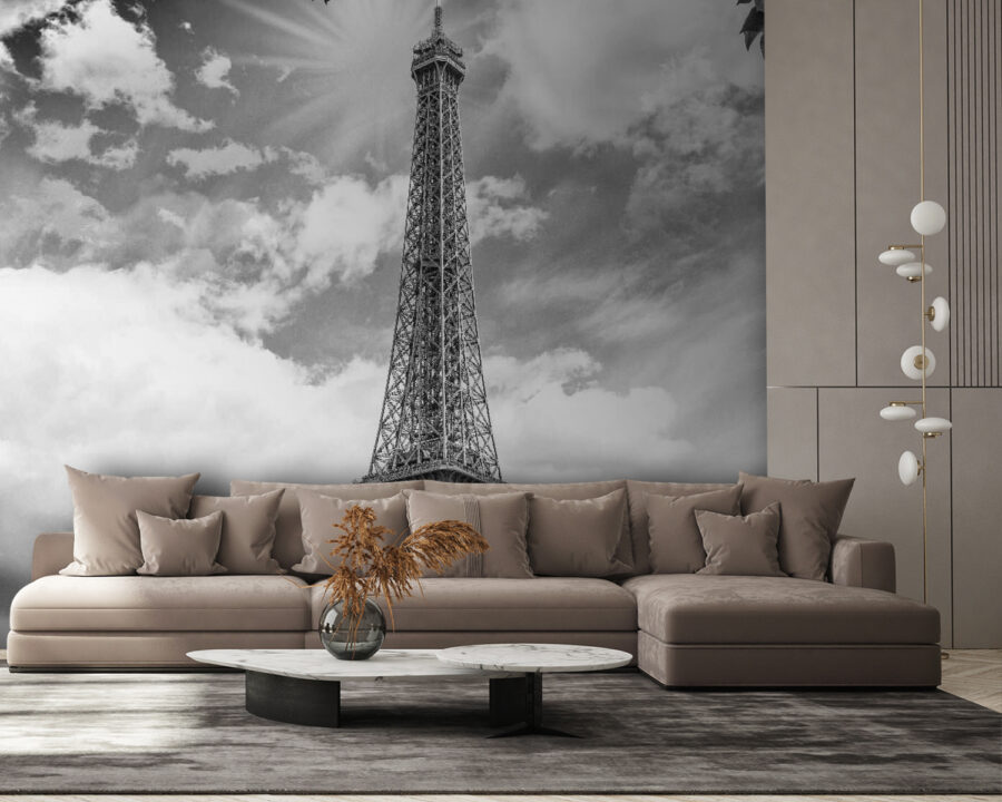Bring a piece of Paris into your home with the “Tall Tower with a Cloudy Sky” mural. Imagine waking up to the graceful silhouette of the Eiffel Tower, set against a dreamy sky that shifts with the light of day. It’s like having a little slice of the City of Light right in your living space. Picture cozy evenings, perhaps sipping café au lait and chatting with friends, while the mural whispers tales of romance and adventure. The classic black-and-white tones add a touch of elegance without being too flashy—perfect for framing your everyday moments. Transform your walls and let your imagination soar!